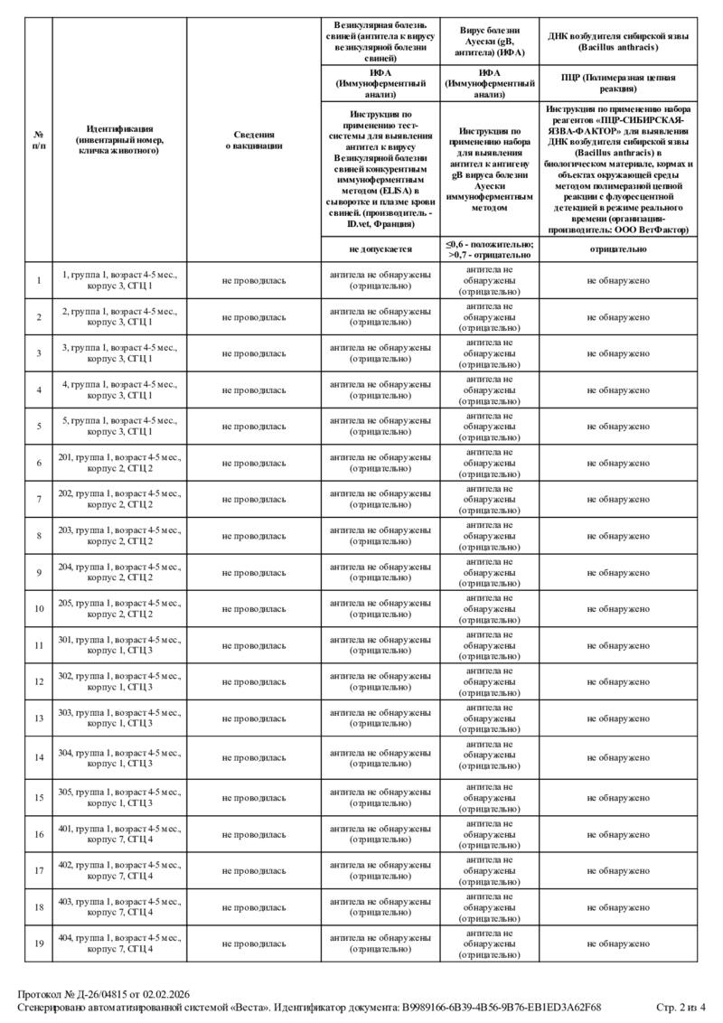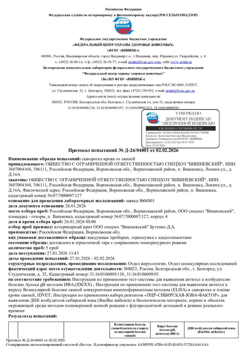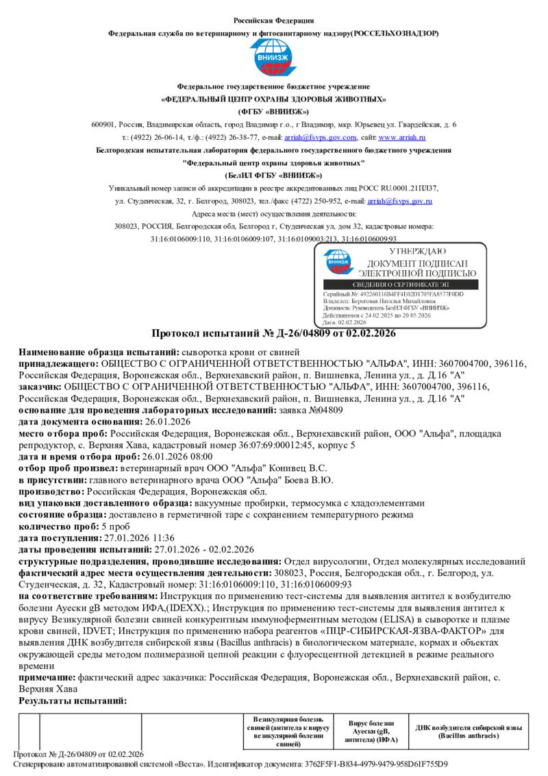 Мониторинг АЧС на фермах СГЦ в феврале 2026 года