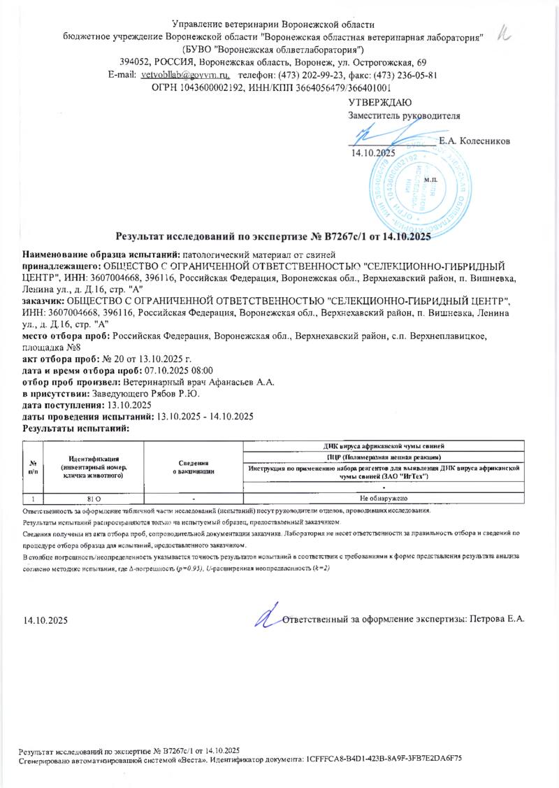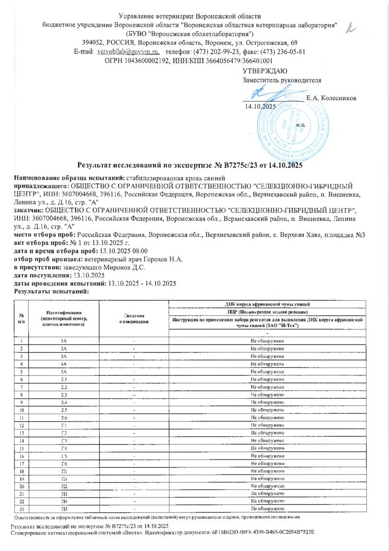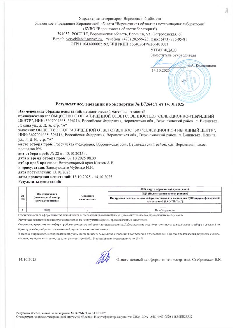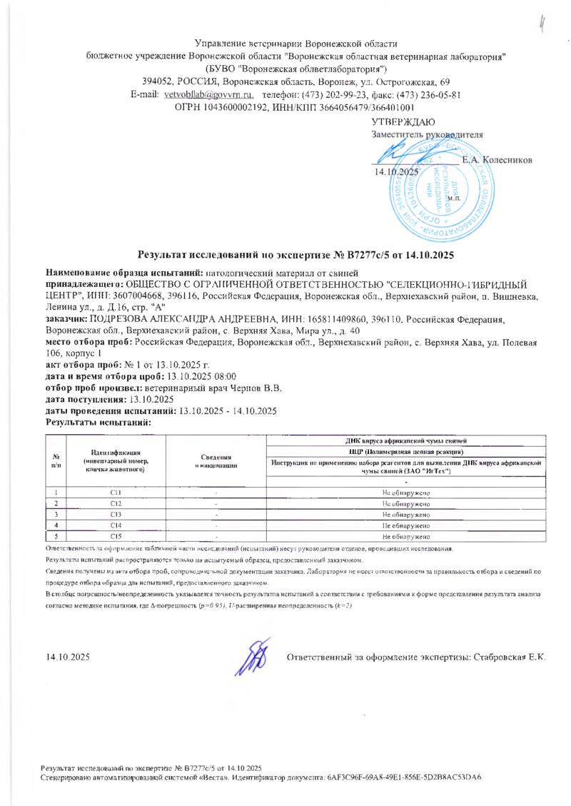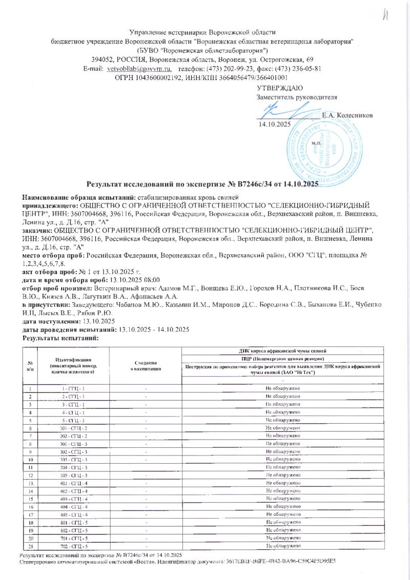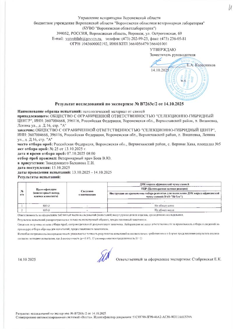 Мониторинг АЧС на фермах СГЦ в октябре 2025 года