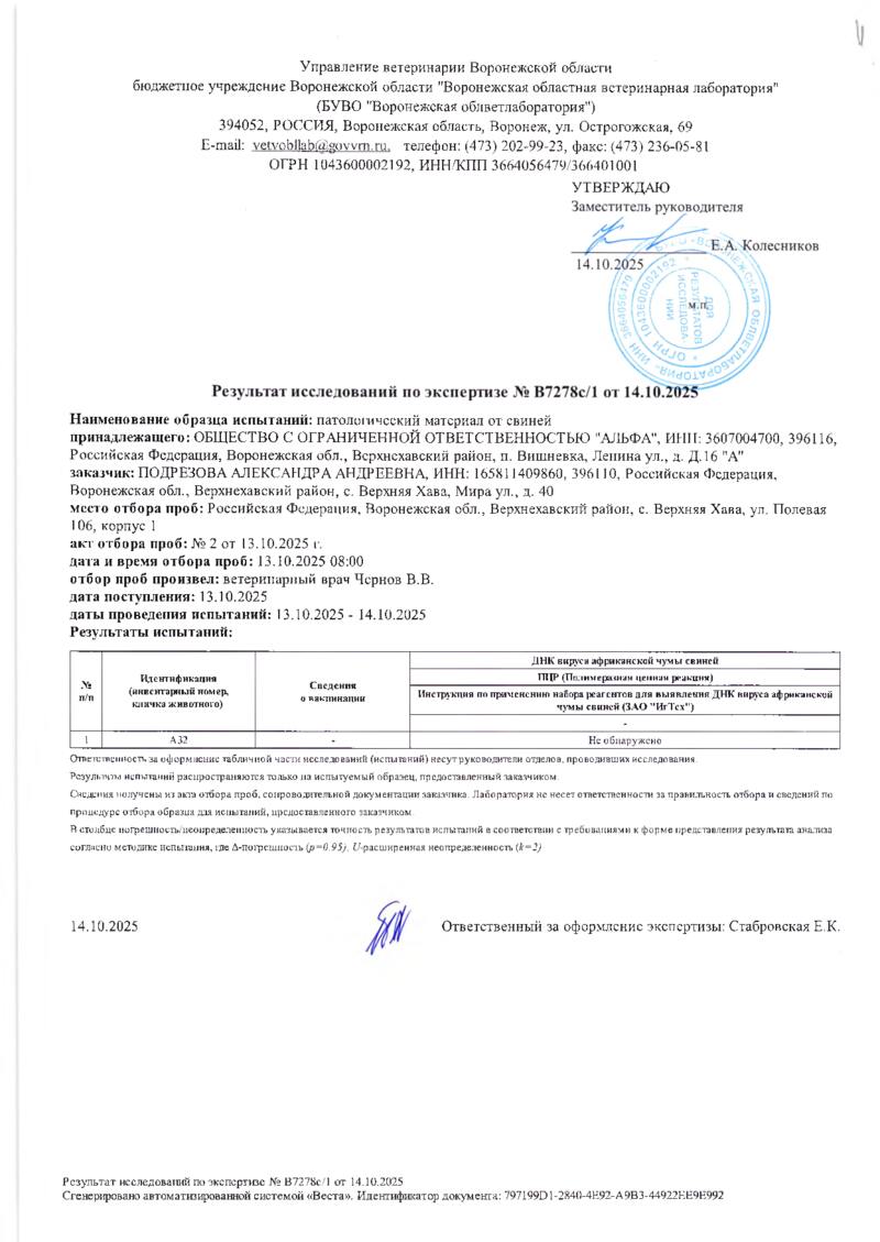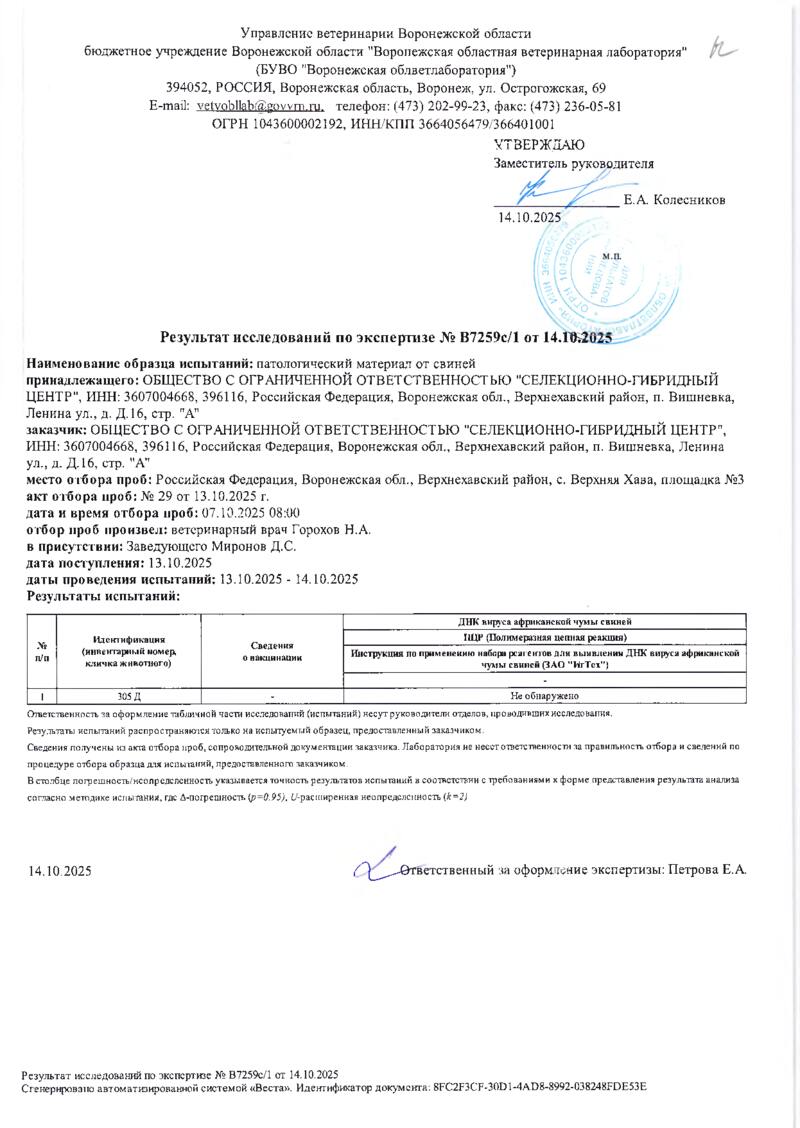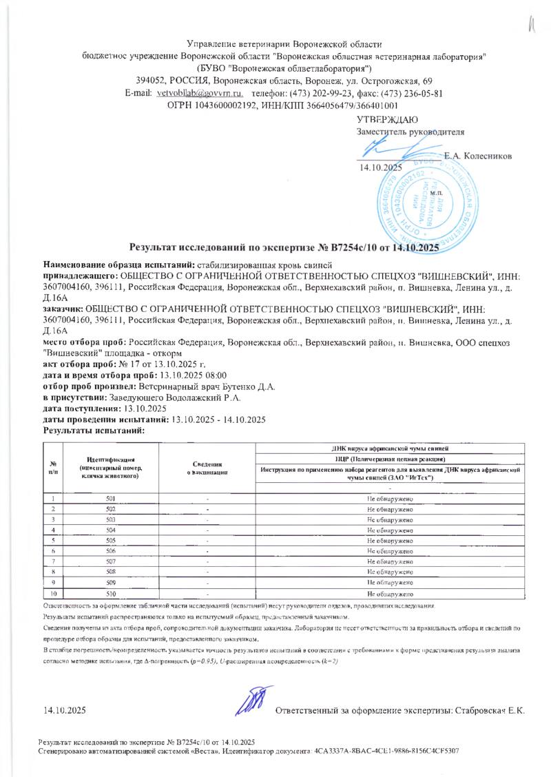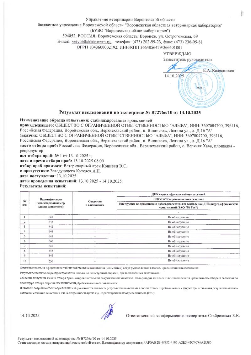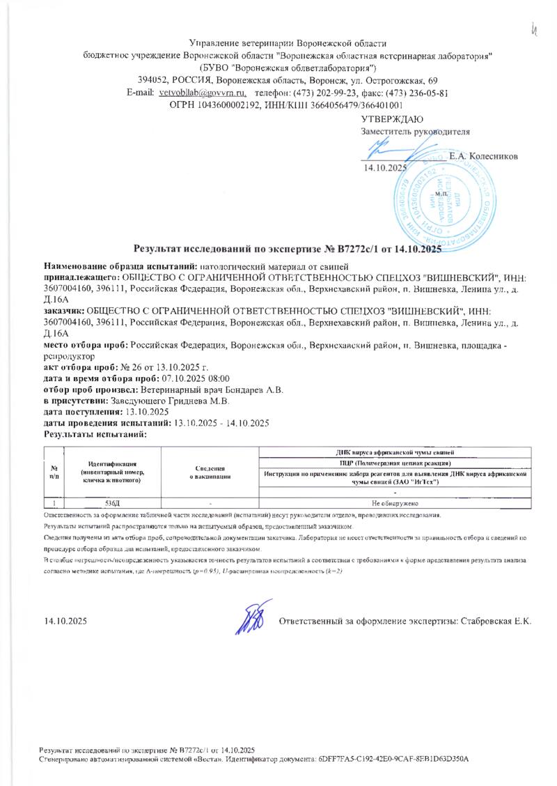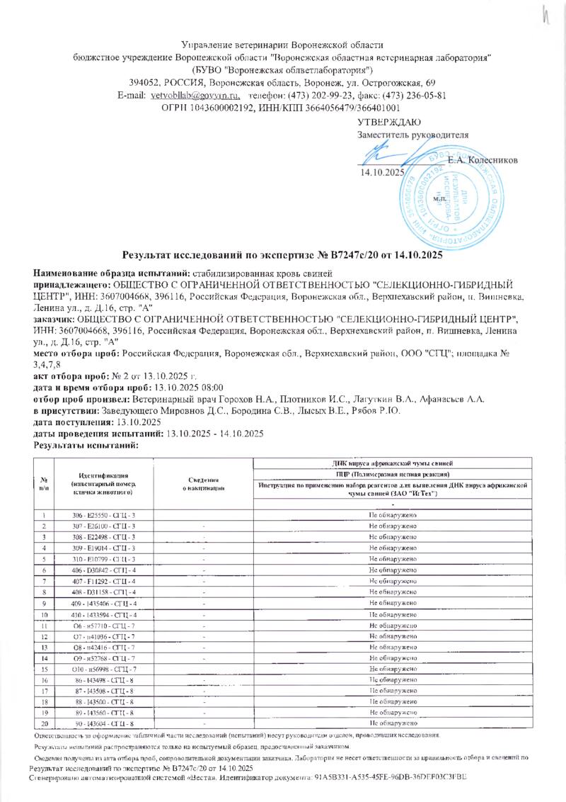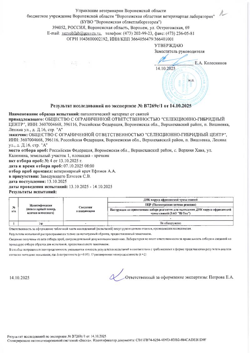 Мониторинг АЧС на фермах СГЦ в октябре 2025 года