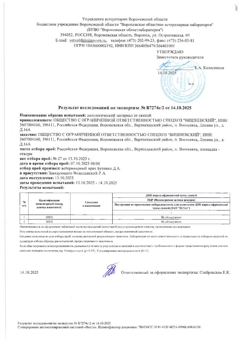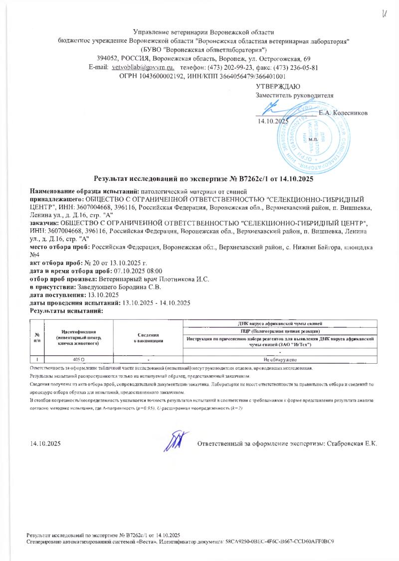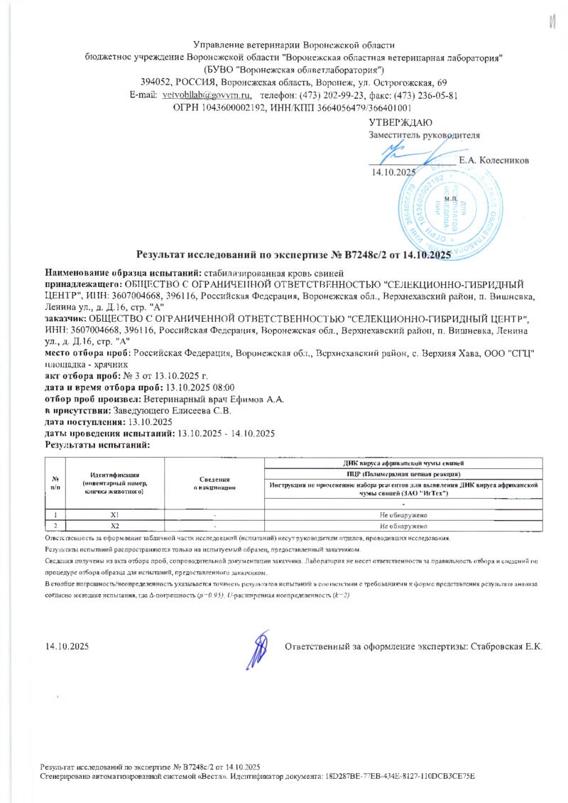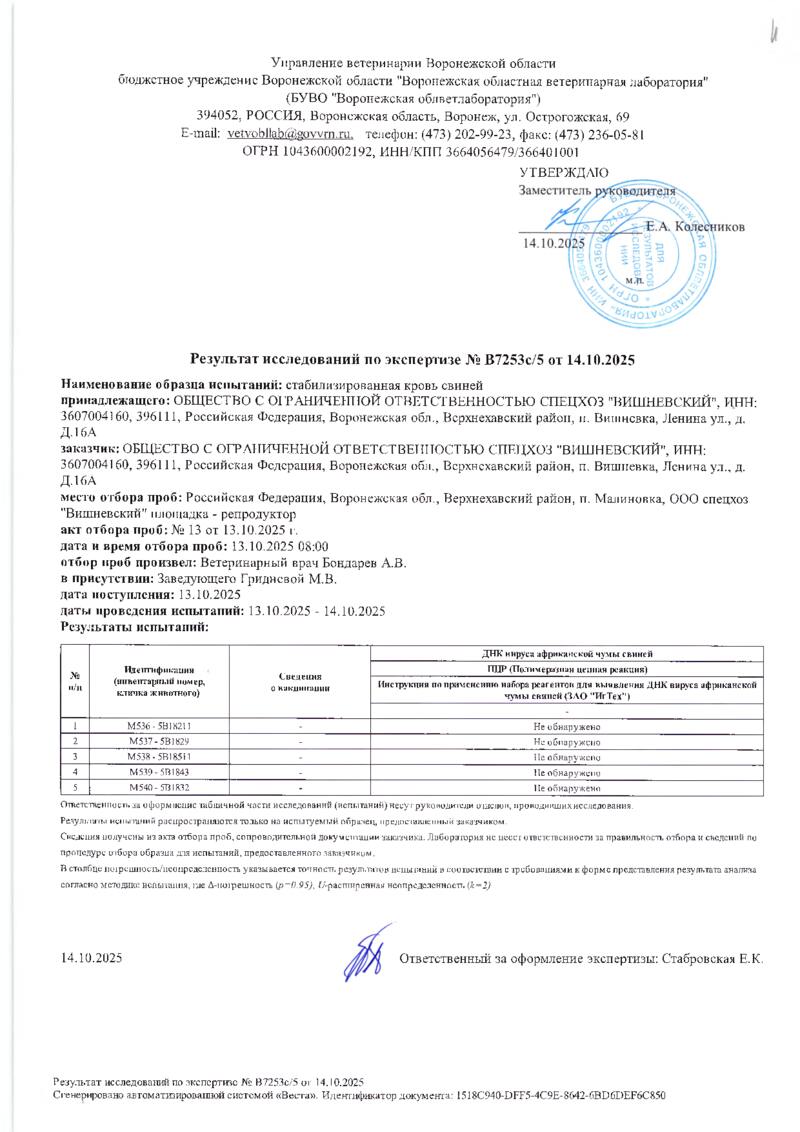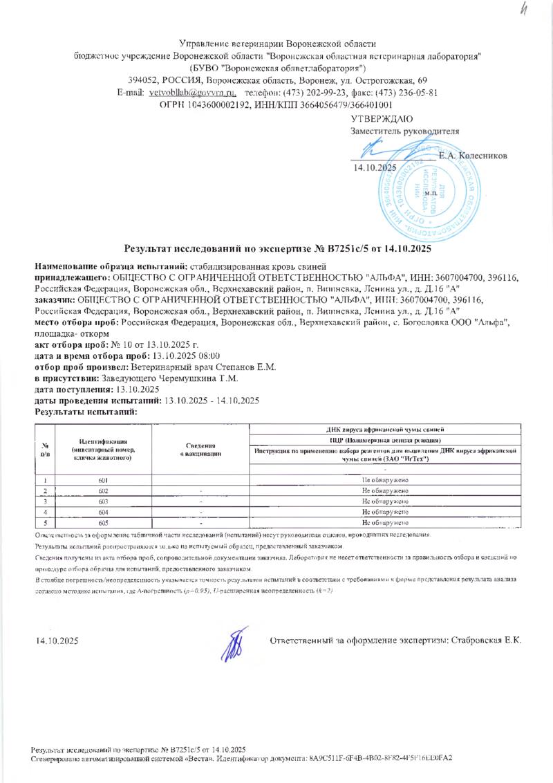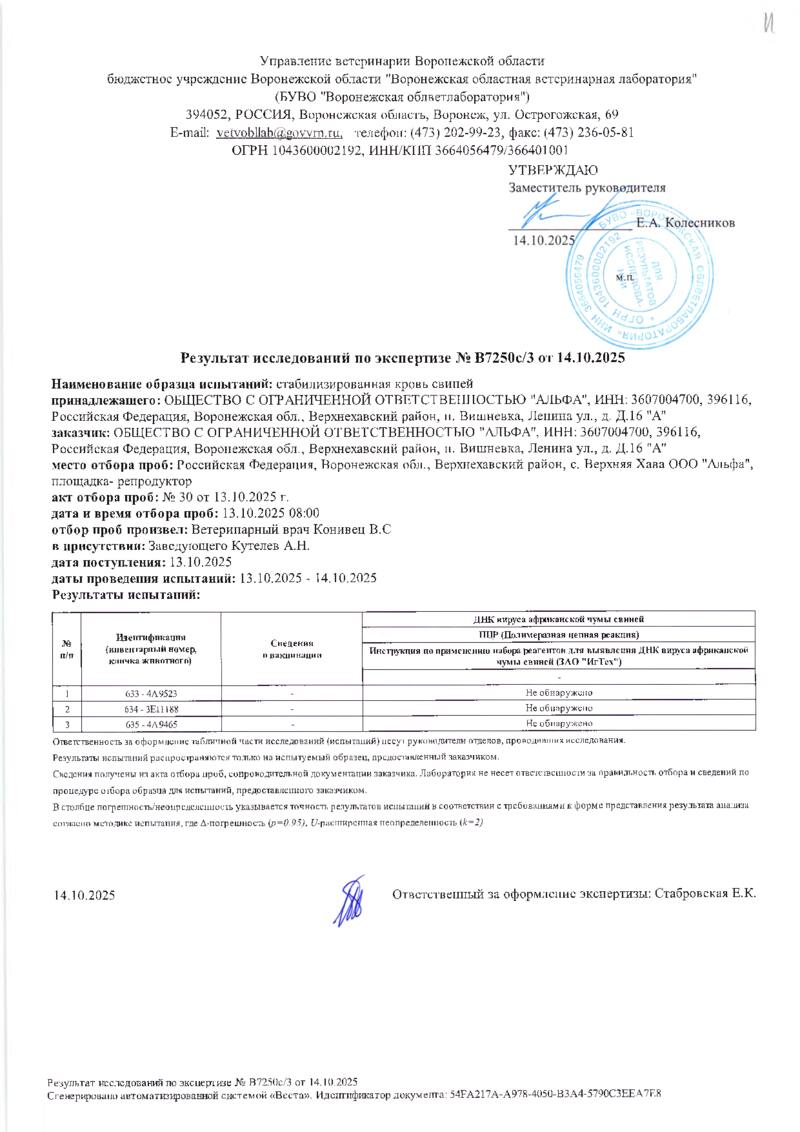 Мониторинг АЧС на фермах СГЦ в октябре 2025 года