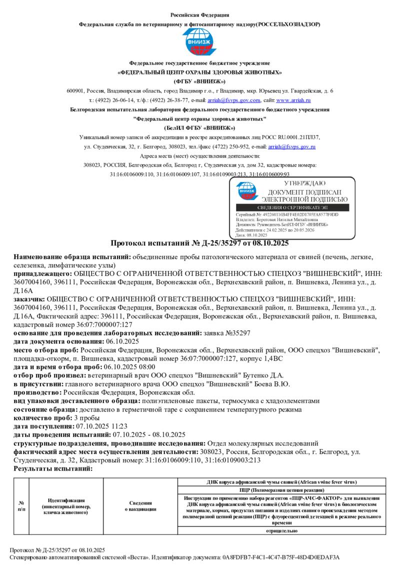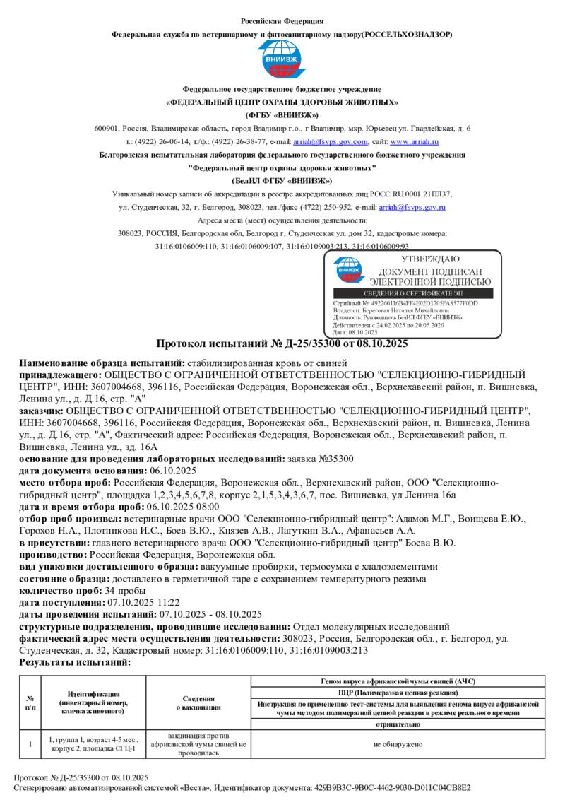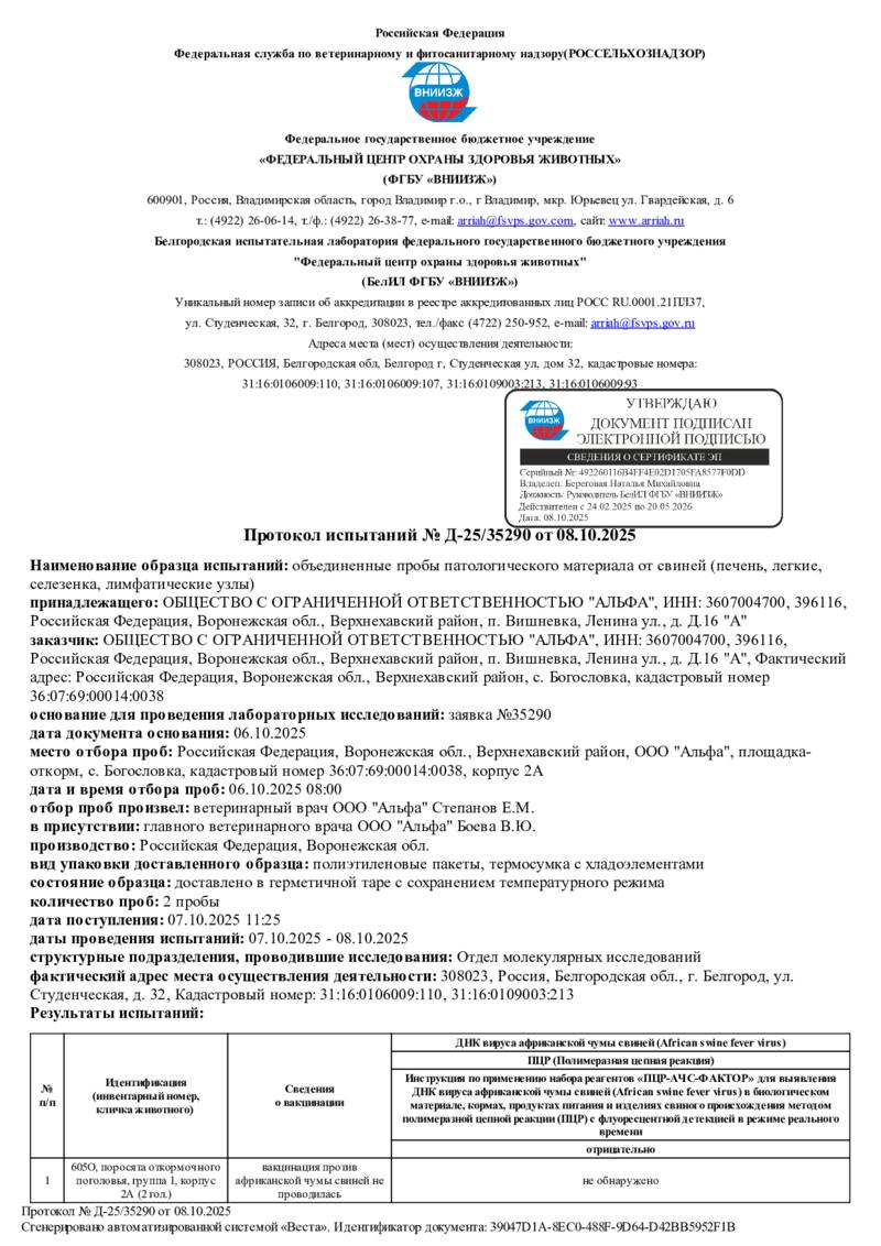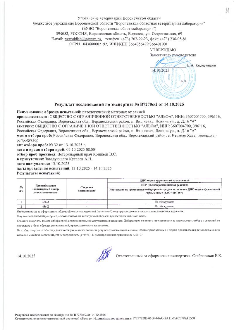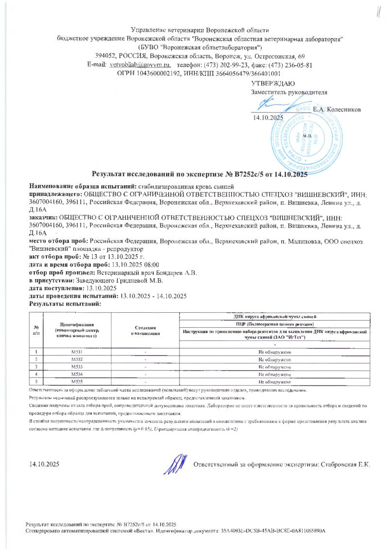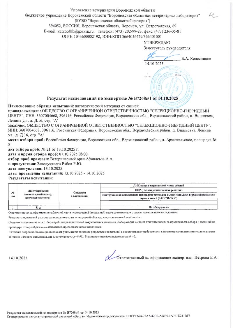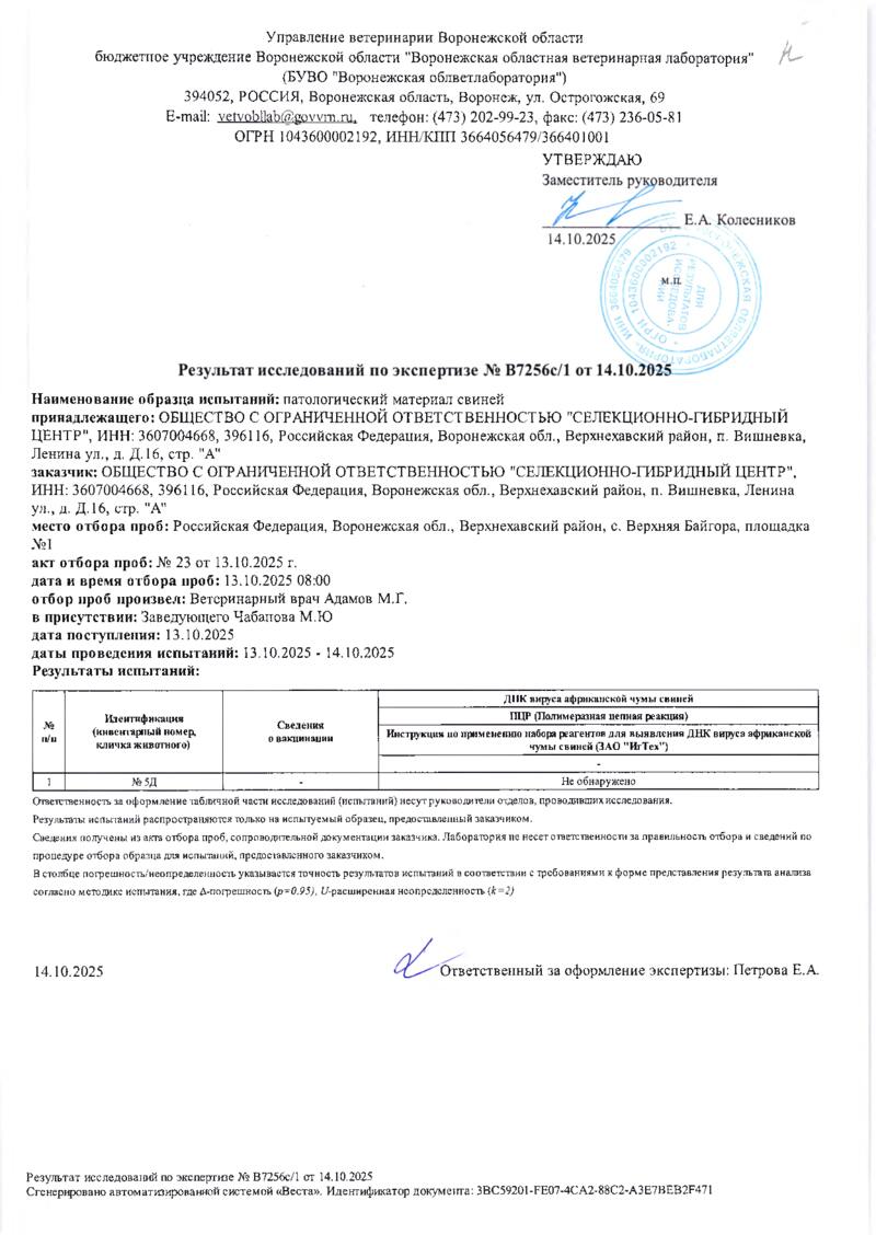 Мониторинг АЧС на фермах СГЦ в октябре 2025 года