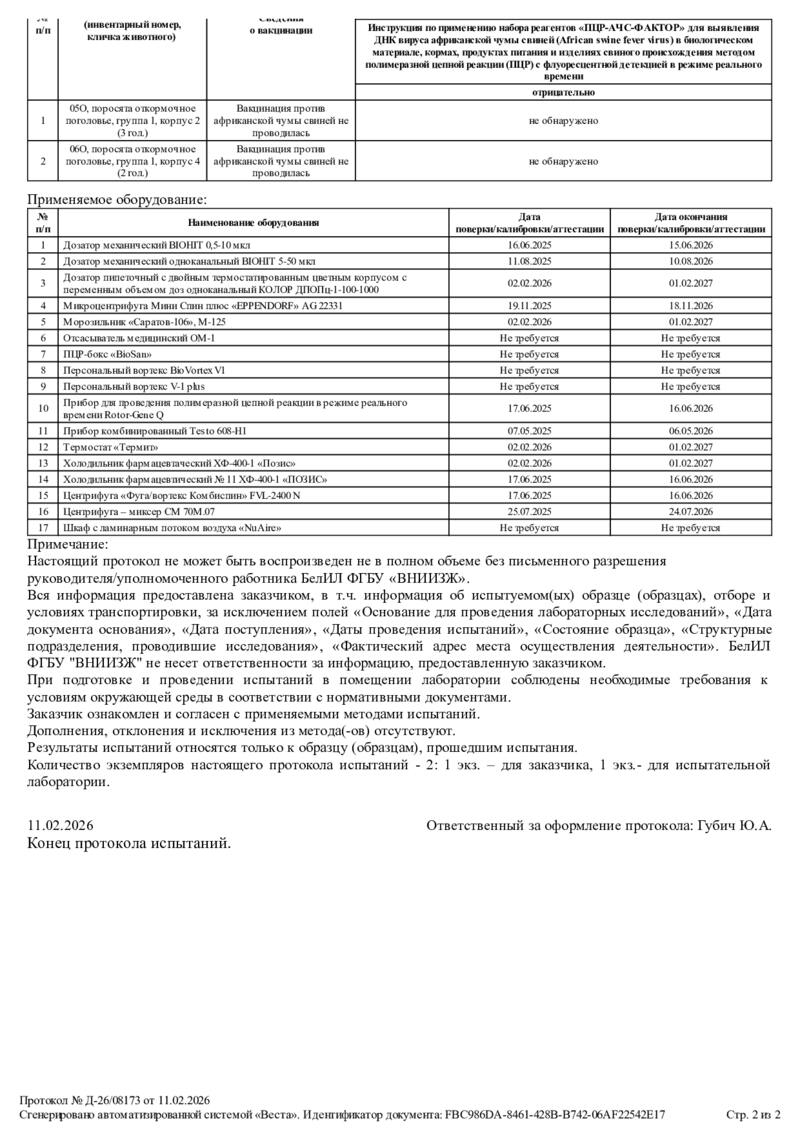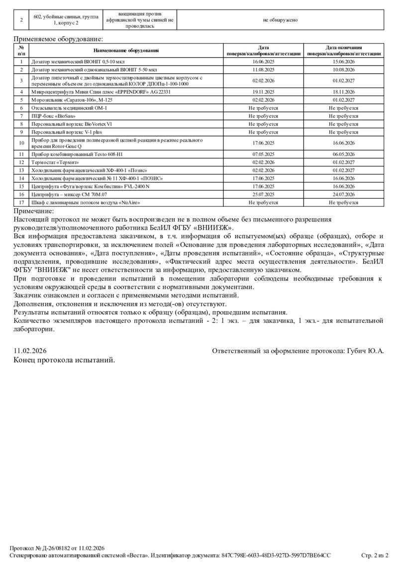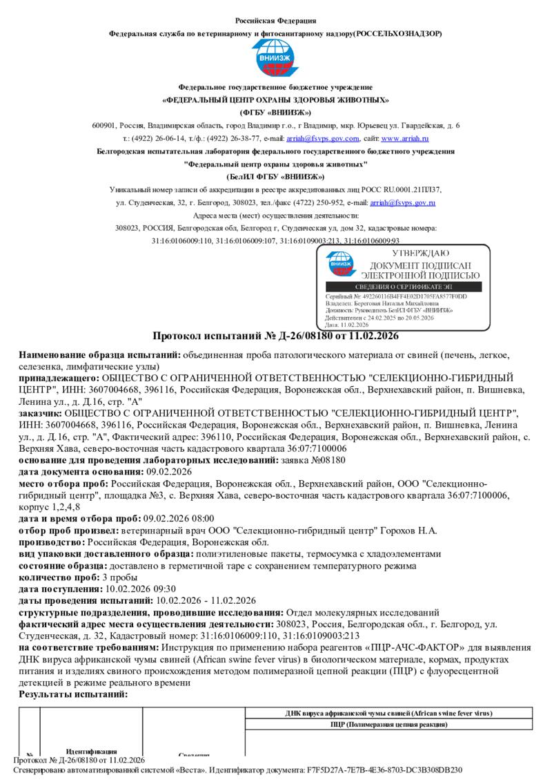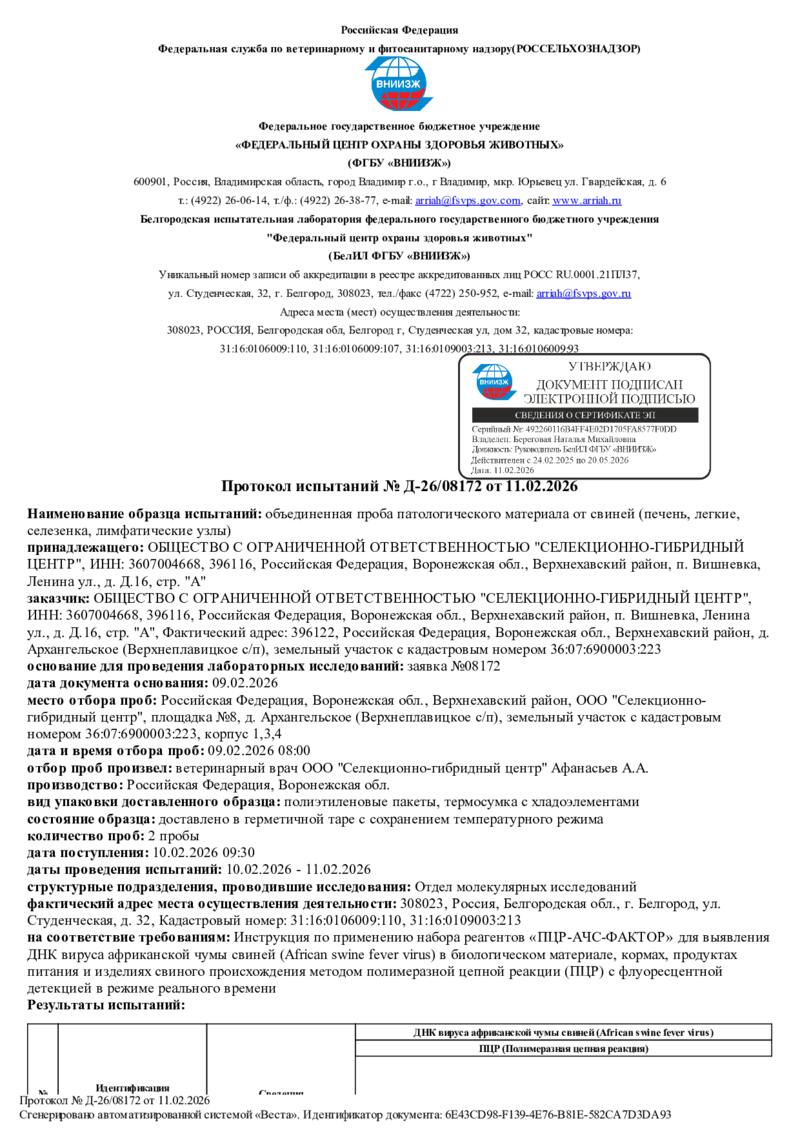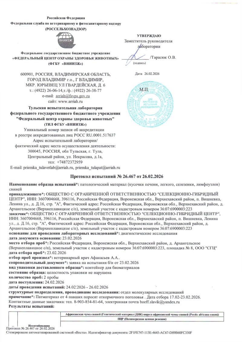 Мониторинг АЧС на фермах СГЦ в феврале 2026 года