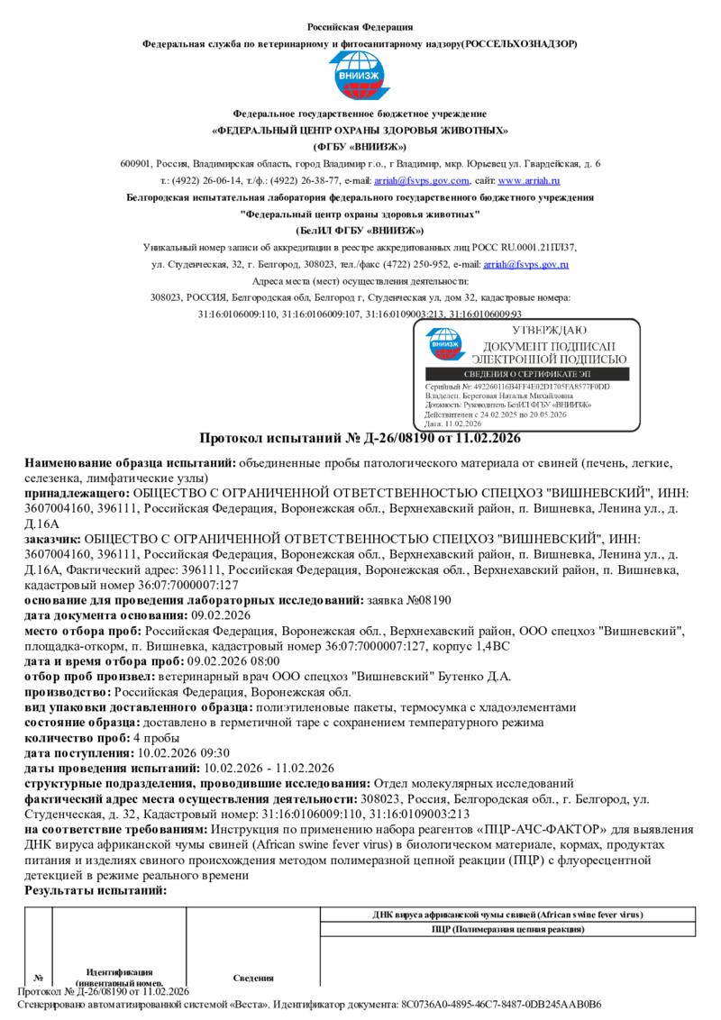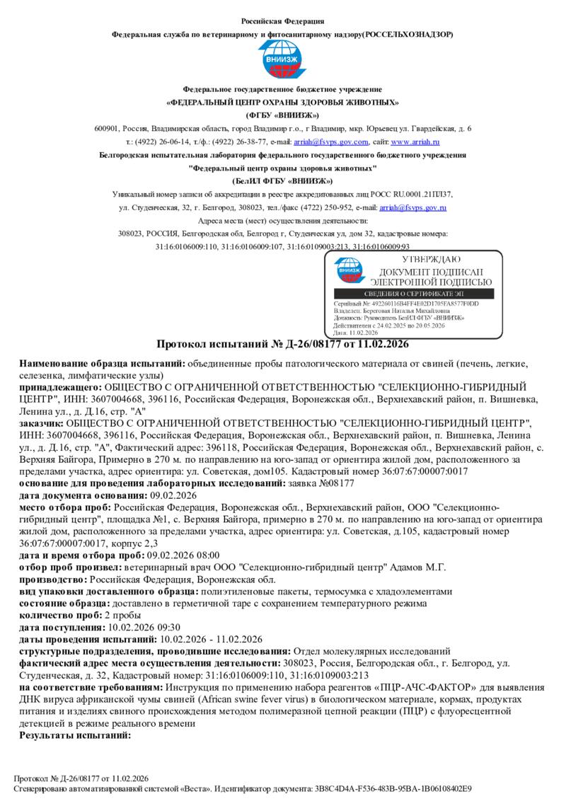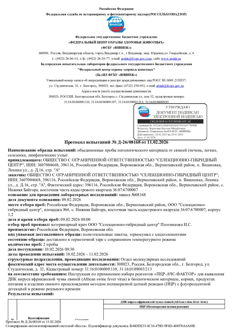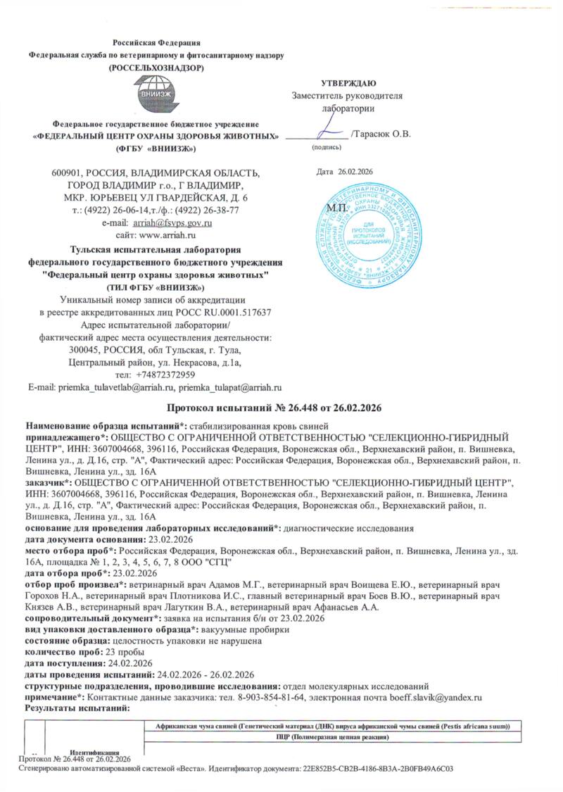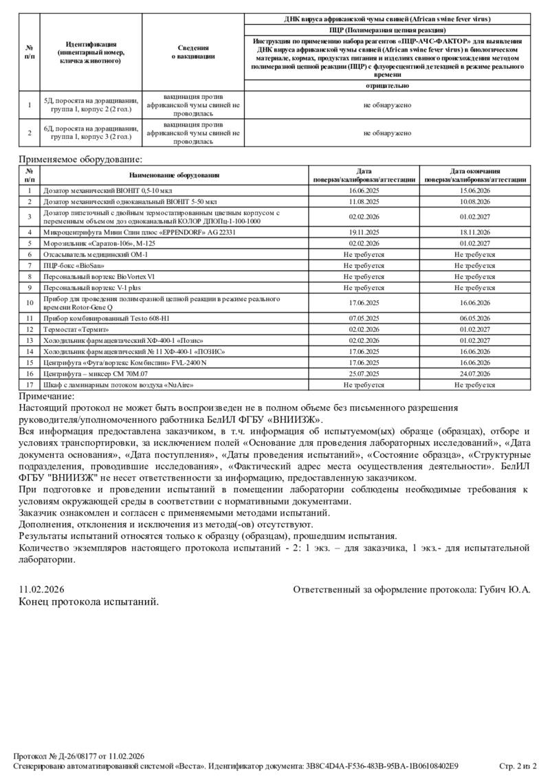 Мониторинг АЧС на фермах СГЦ в феврале 2026 года