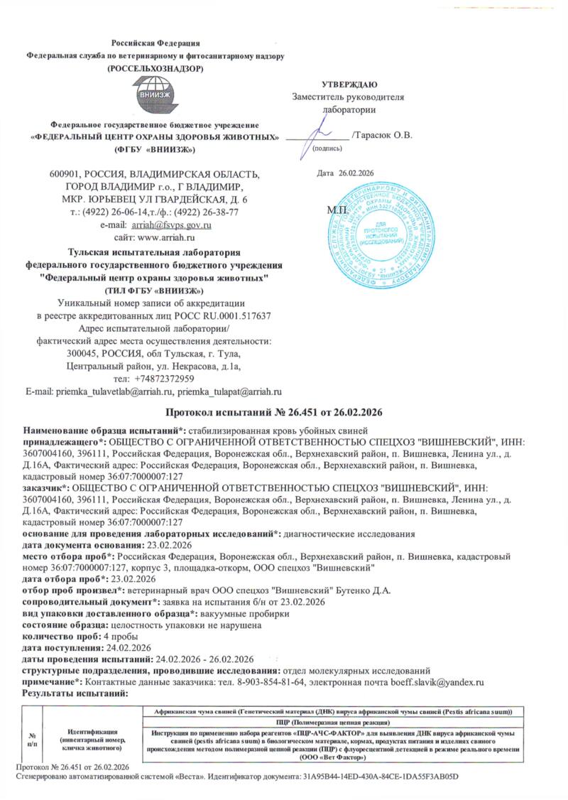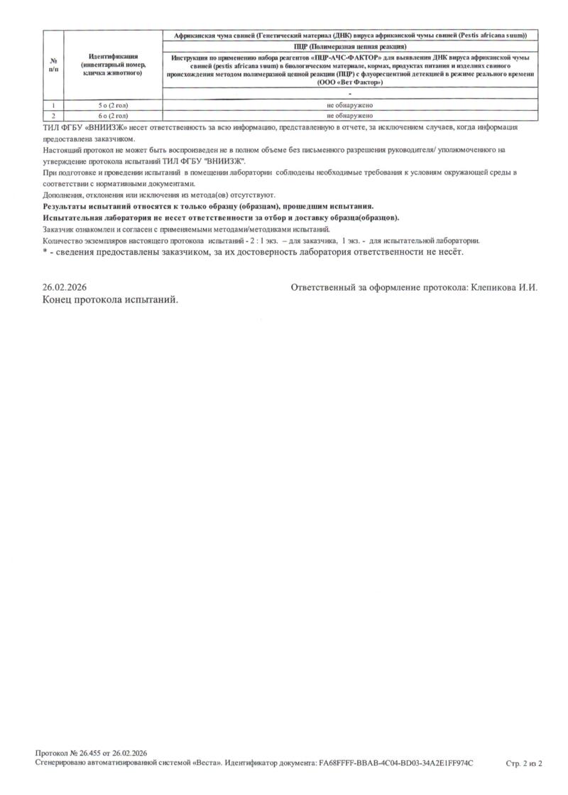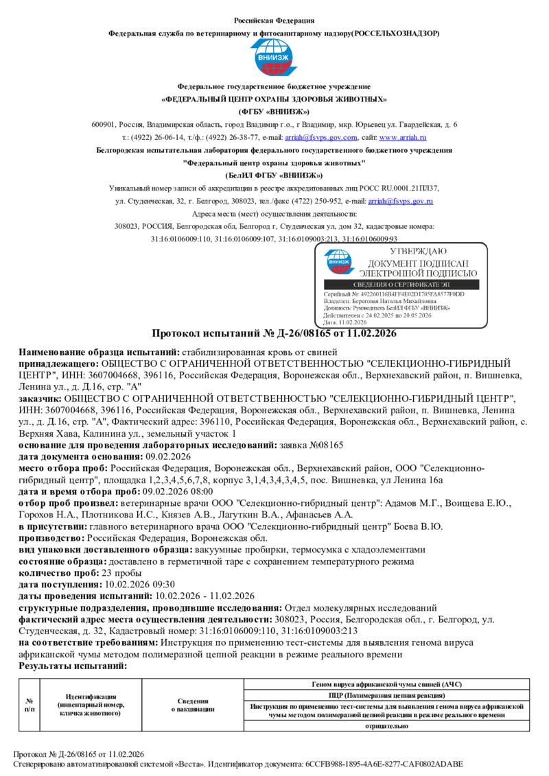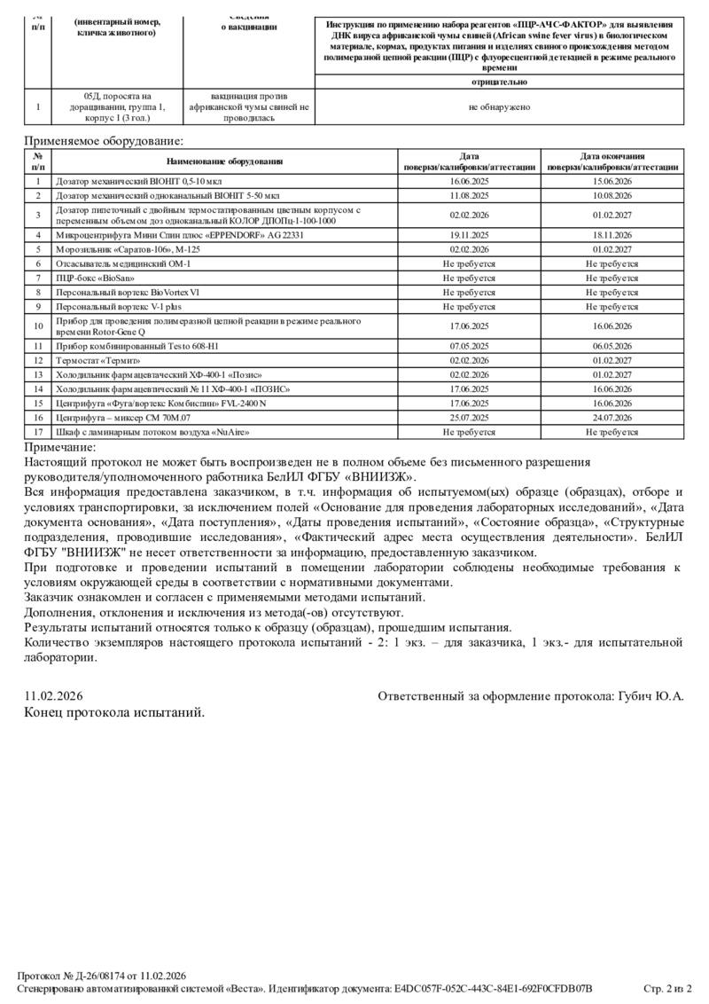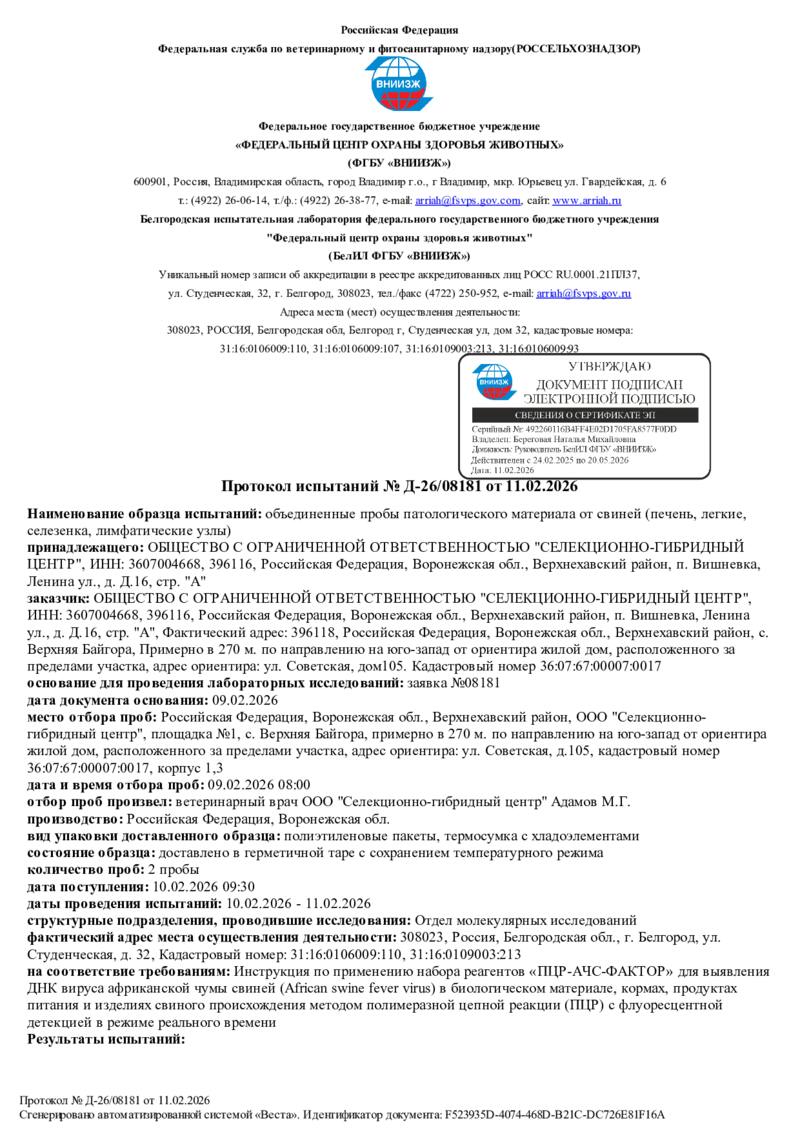 Мониторинг АЧС на фермах СГЦ в феврале 2026 года