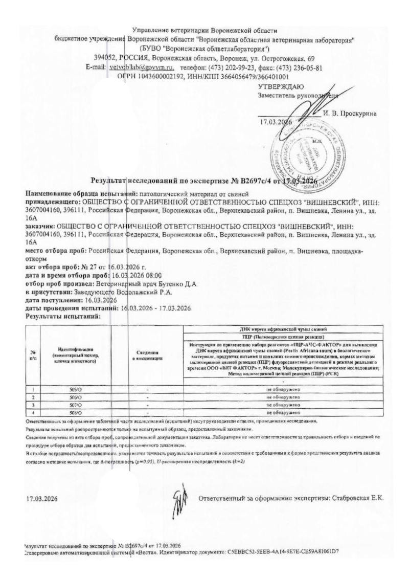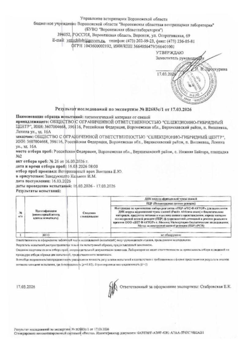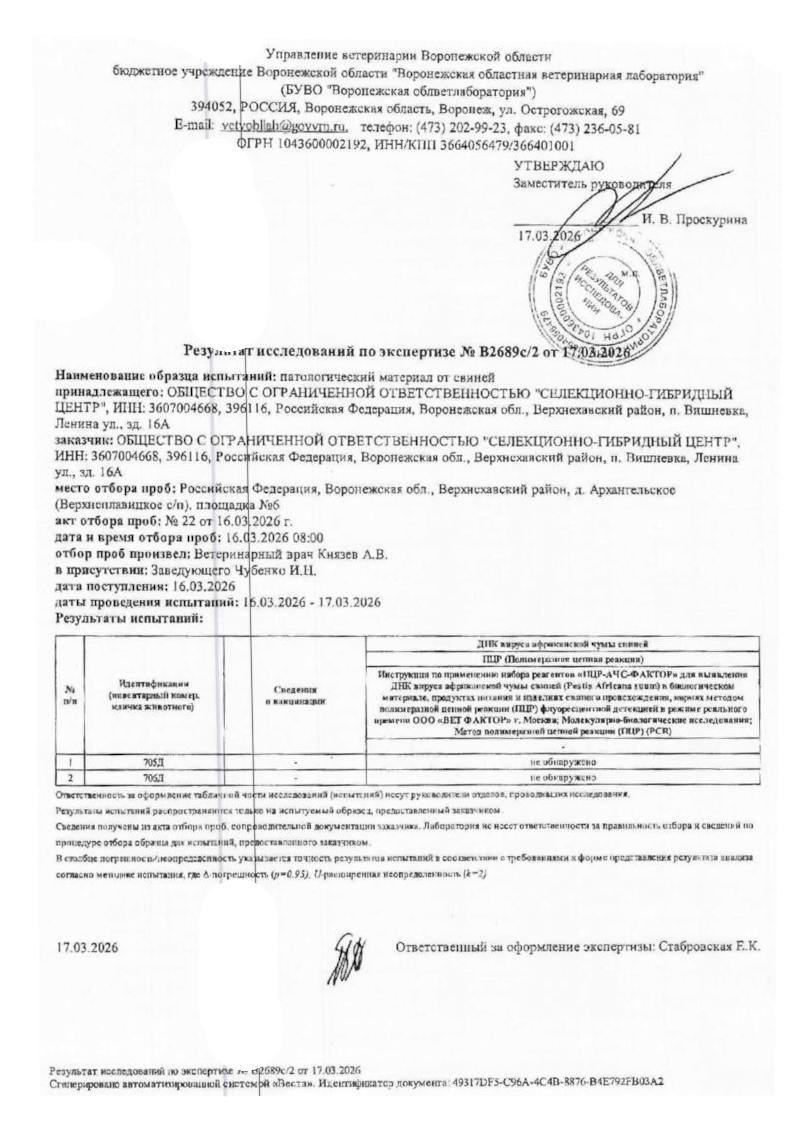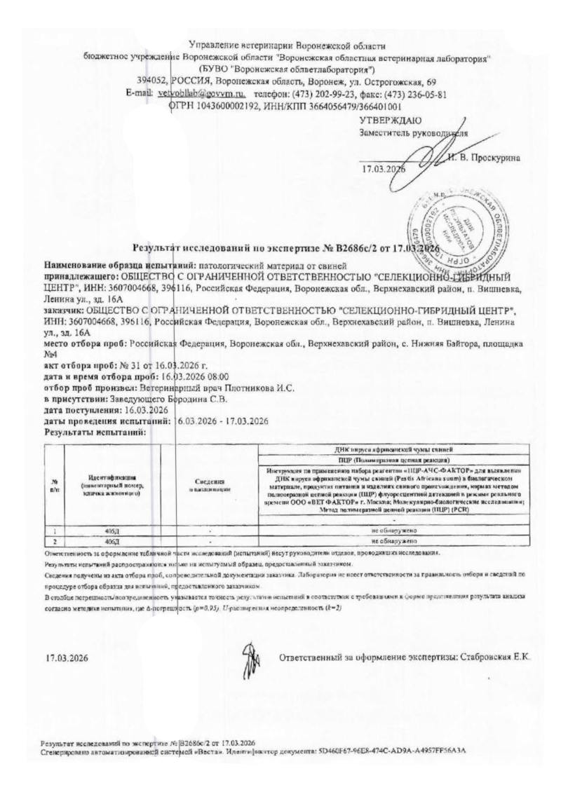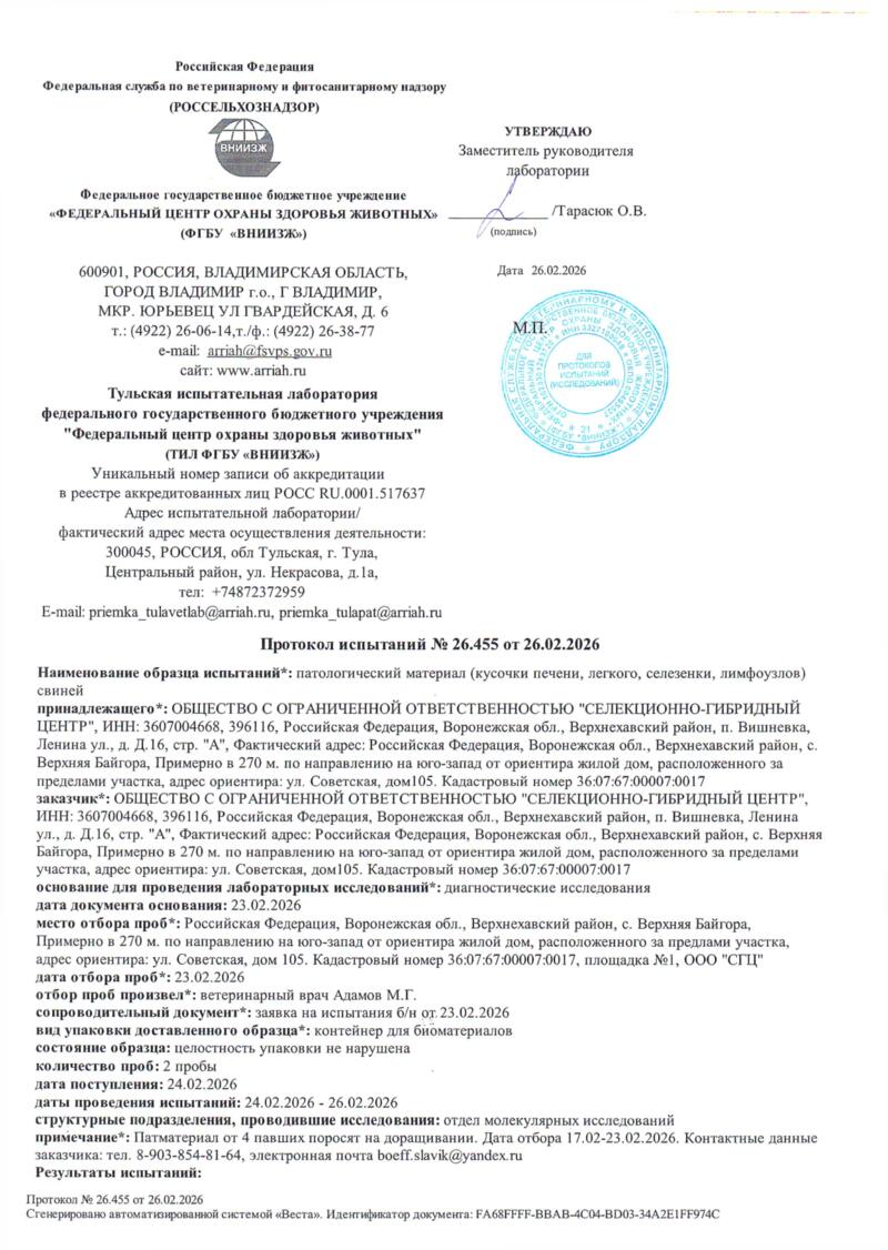 Мониторинг АЧС на фермах СГЦ в марте 2026 года
