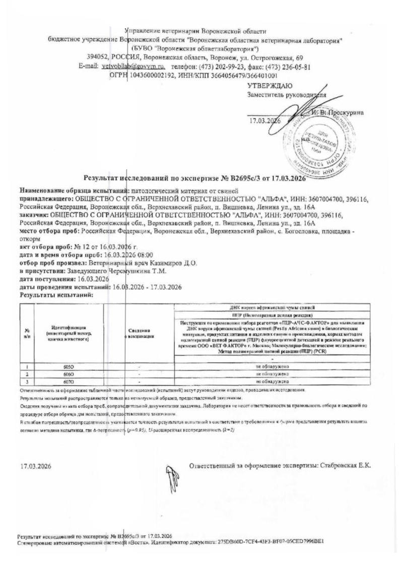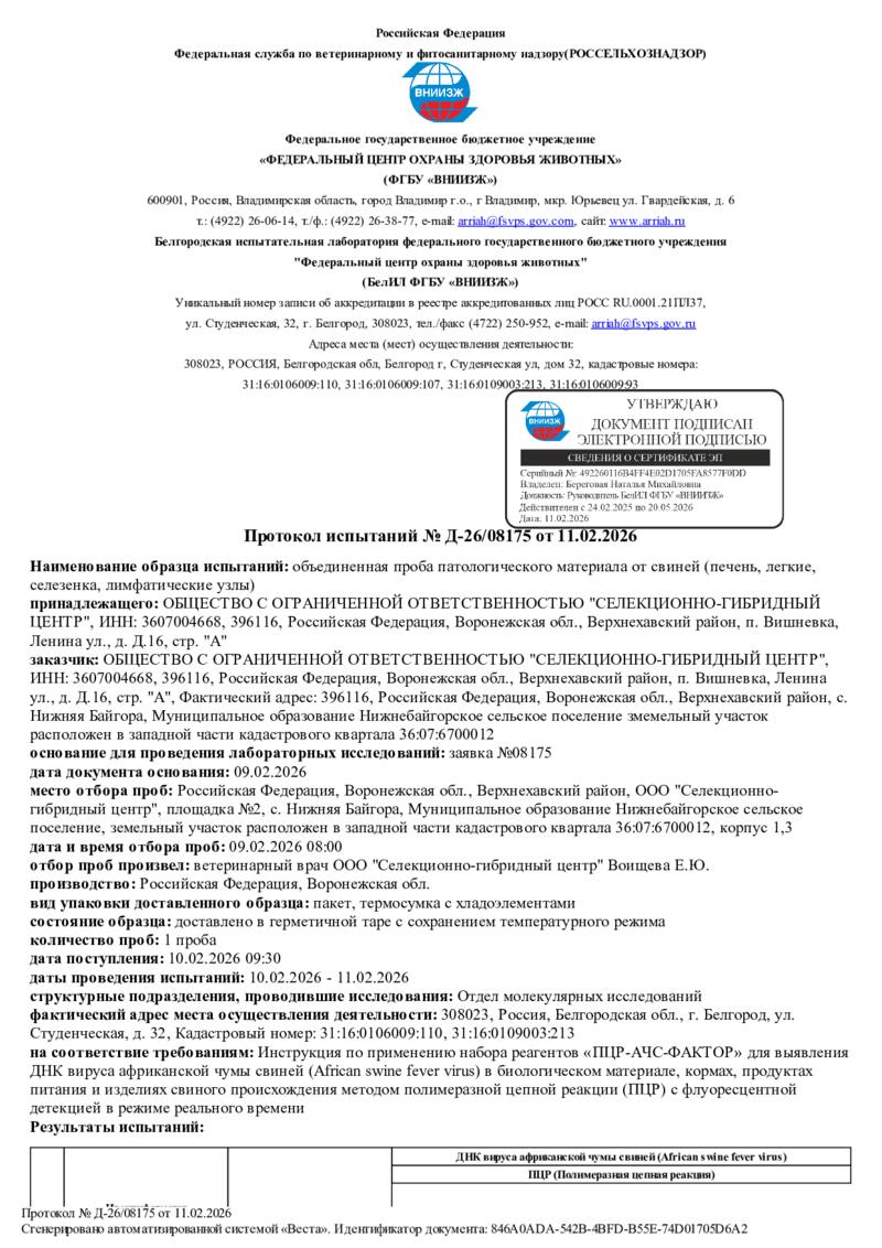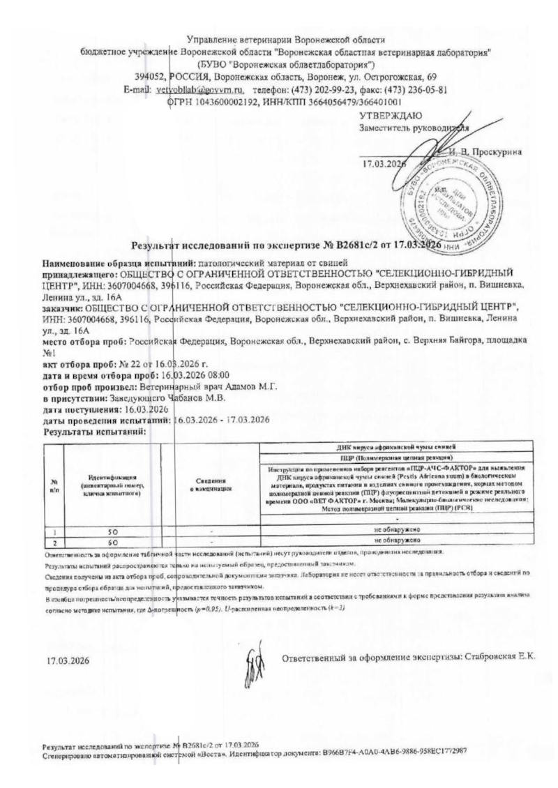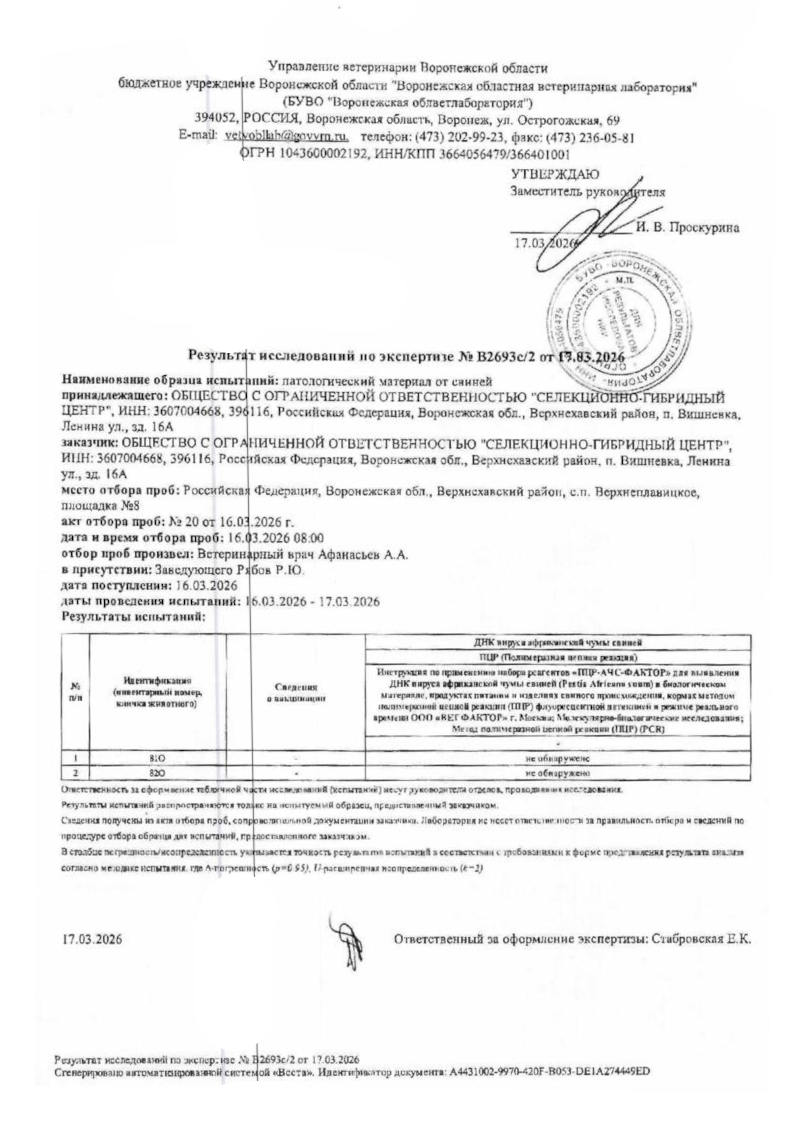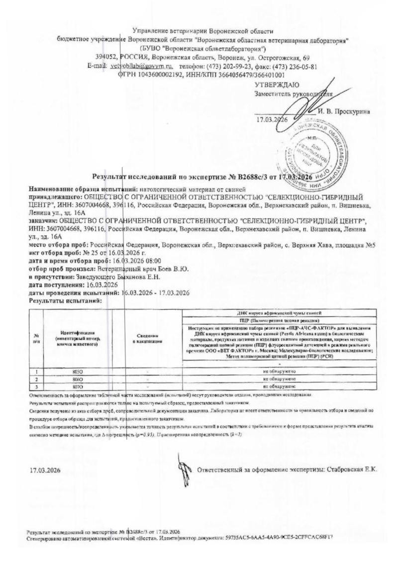 Мониторинг АЧС на фермах СГЦ в марте 2026 года