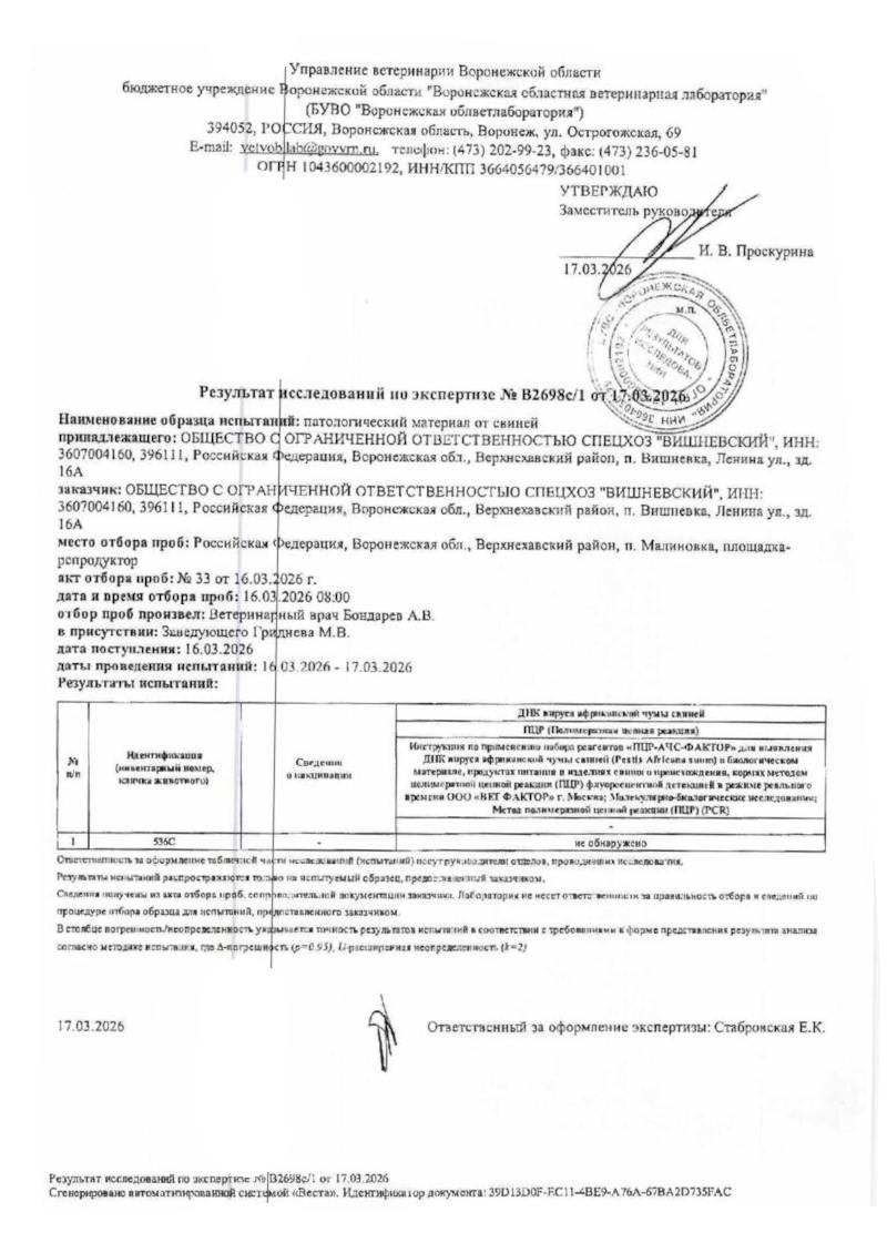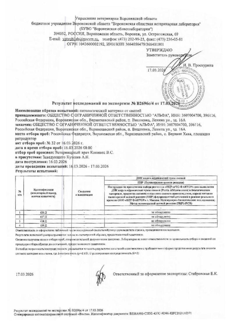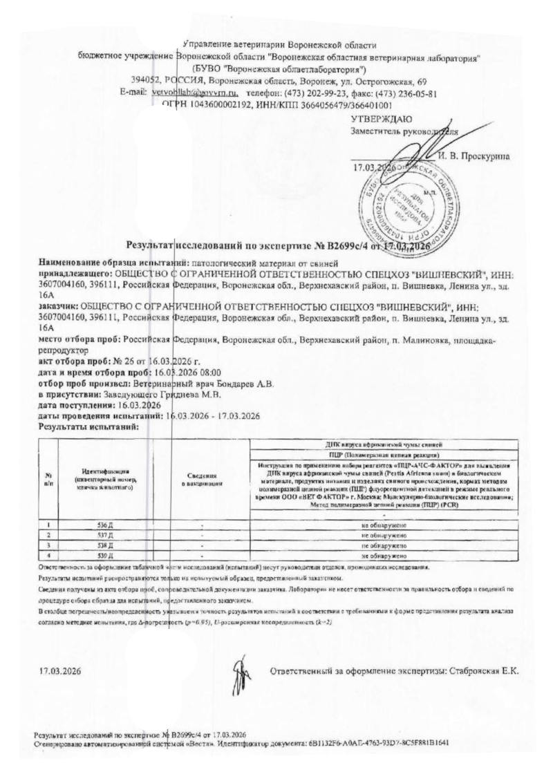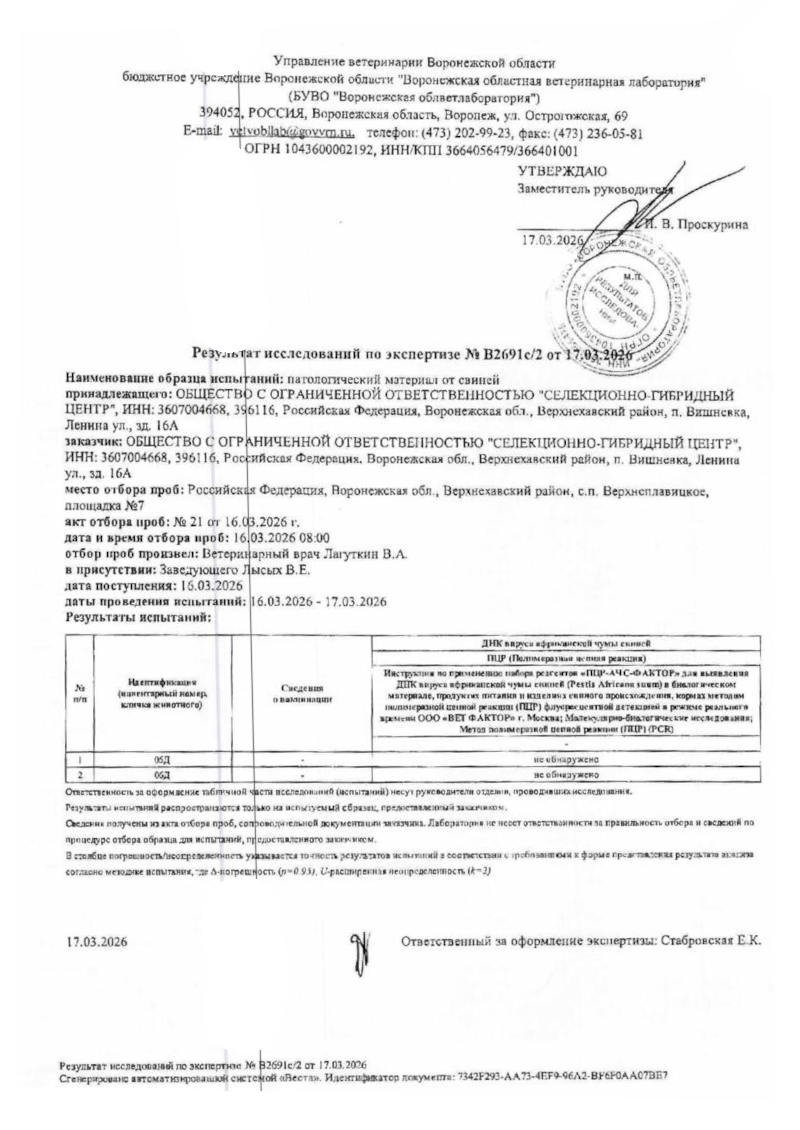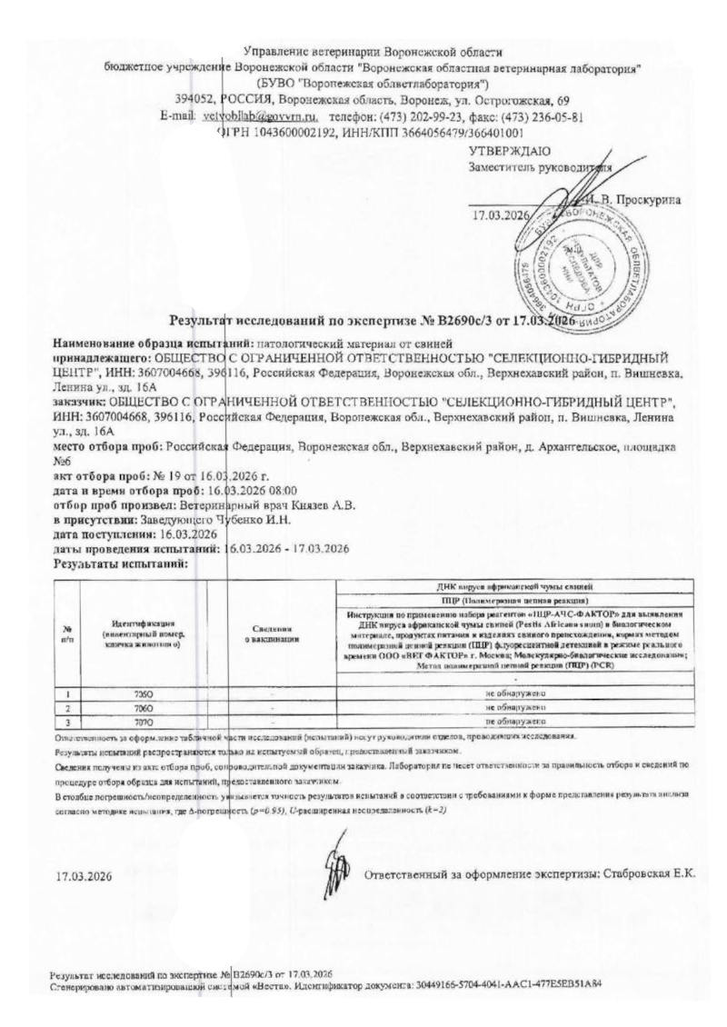 Мониторинг АЧС на фермах СГЦ в марте 2026 года