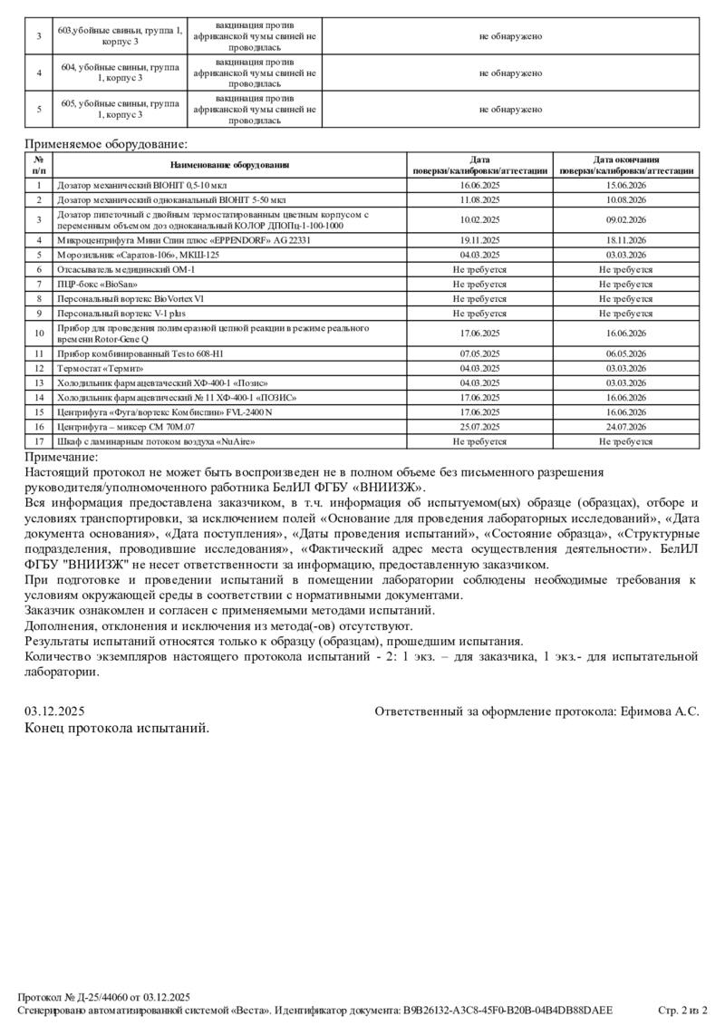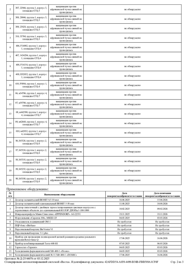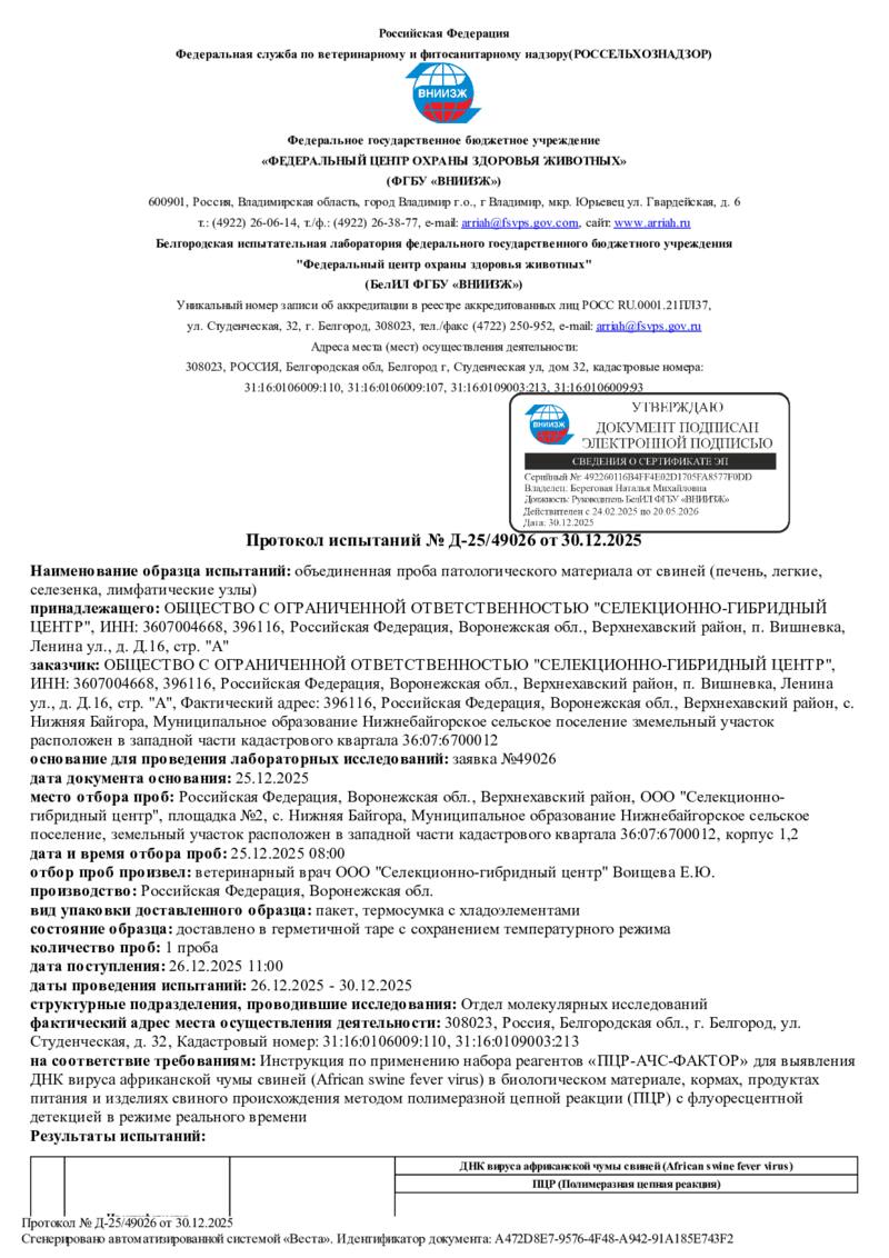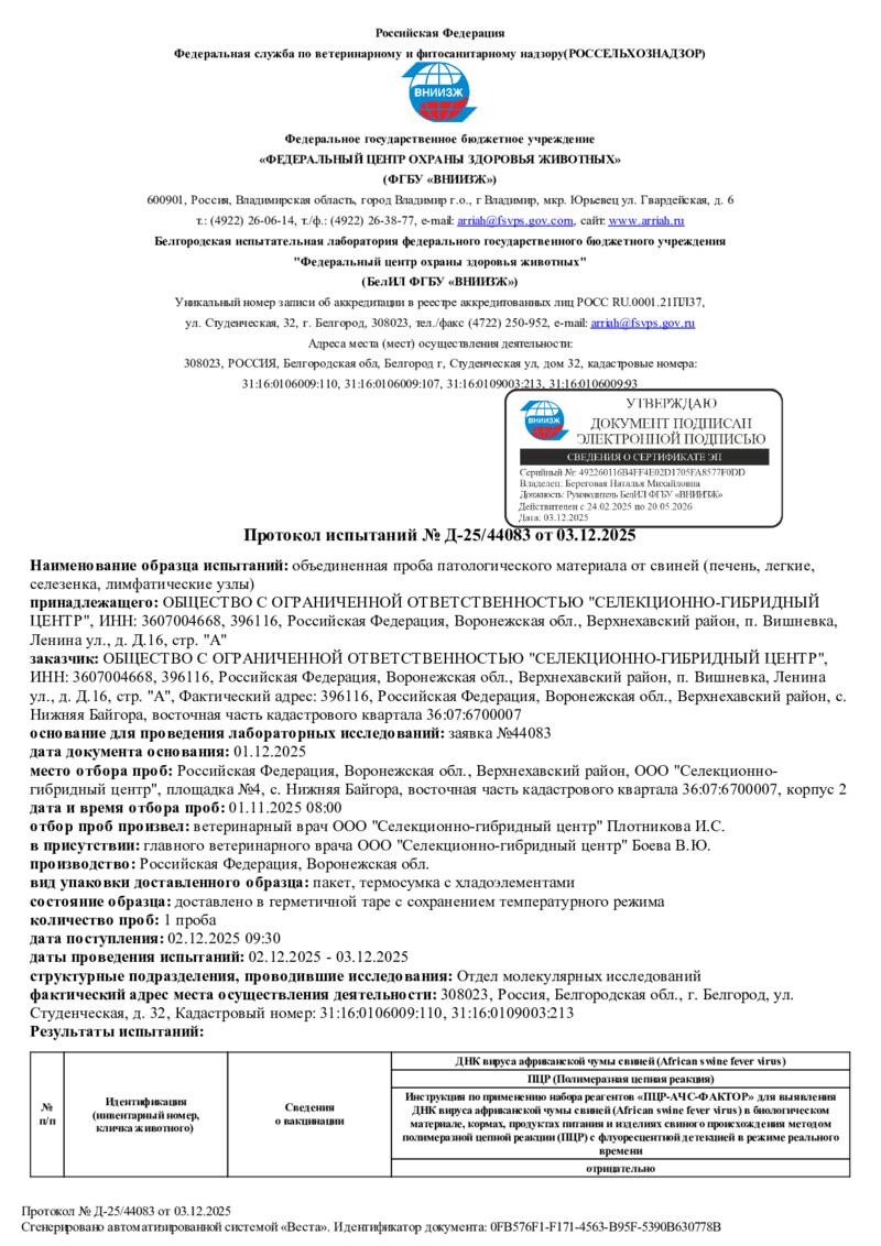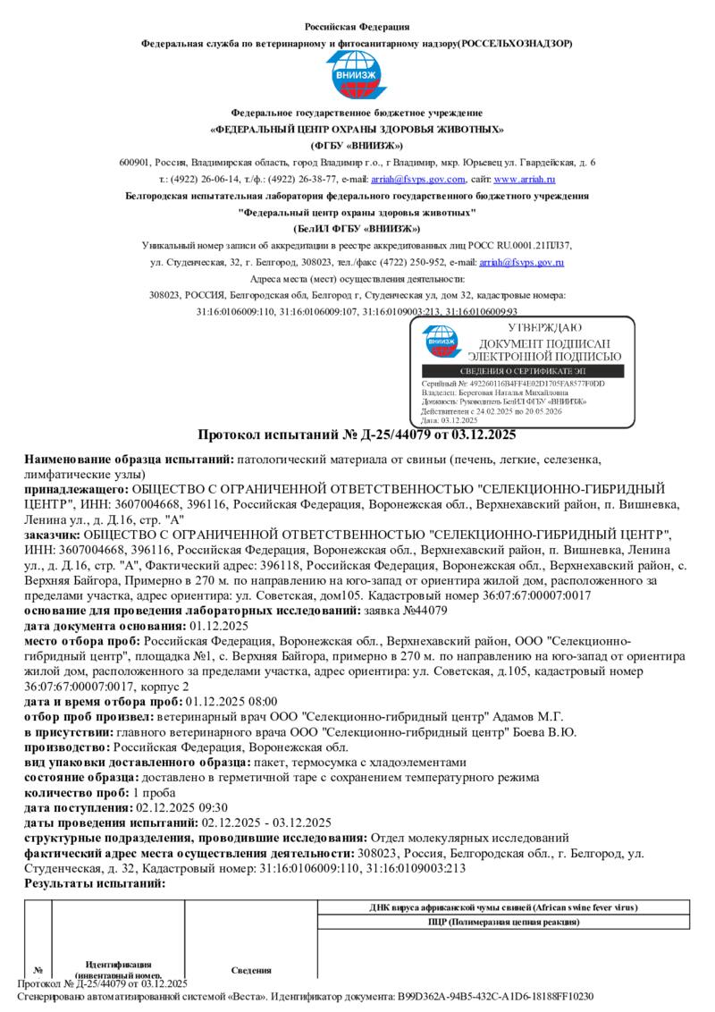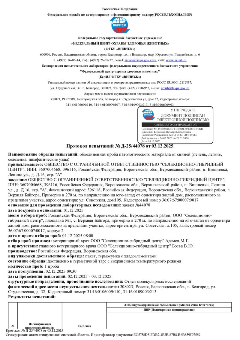 Мониторинг АЧС на фермах СГЦ в декабре 2025 года