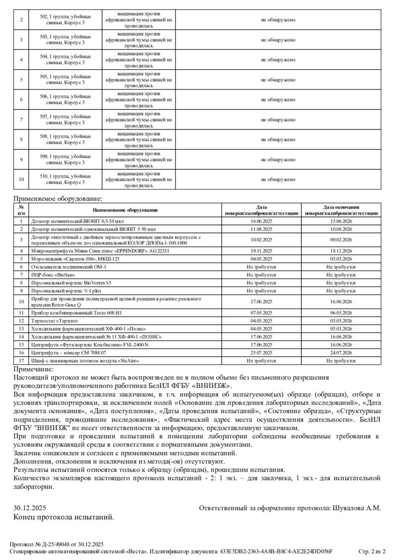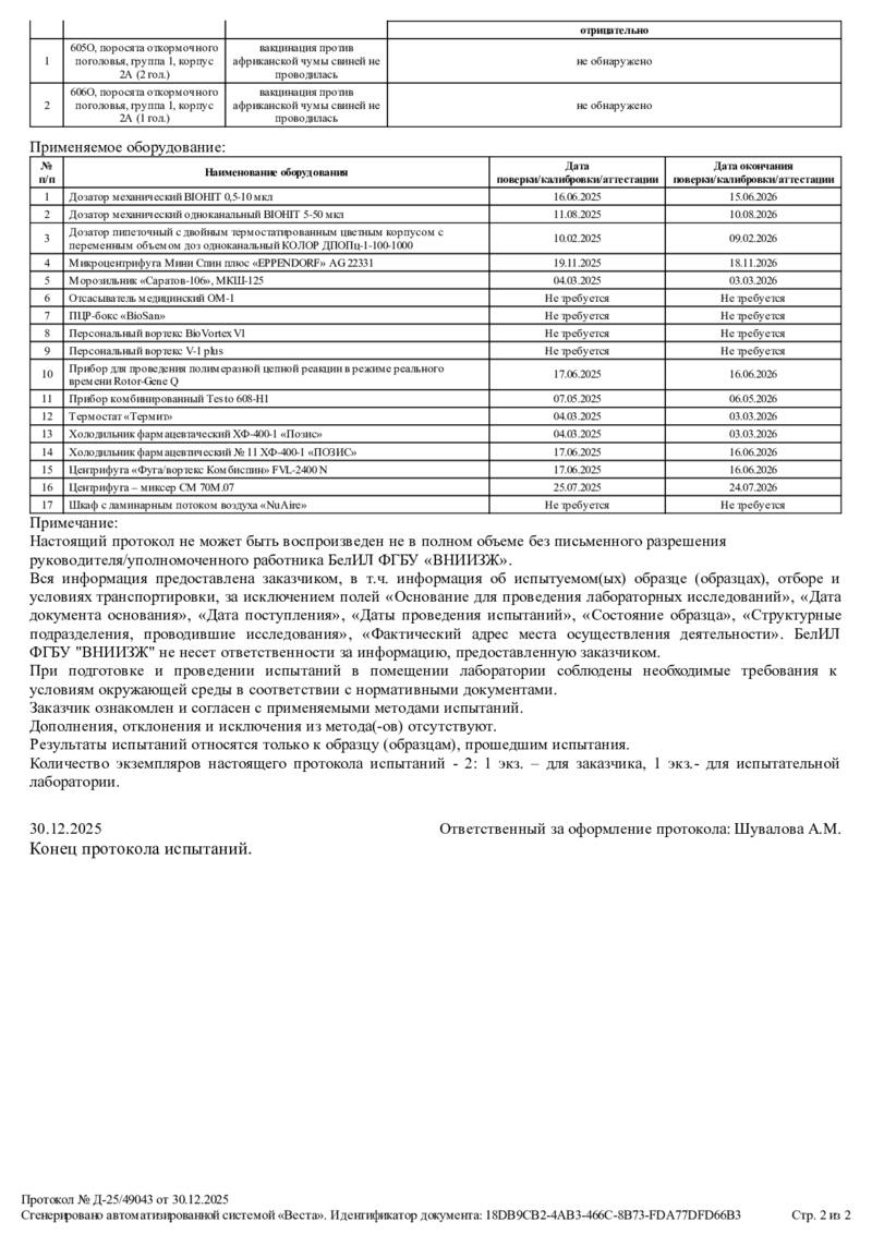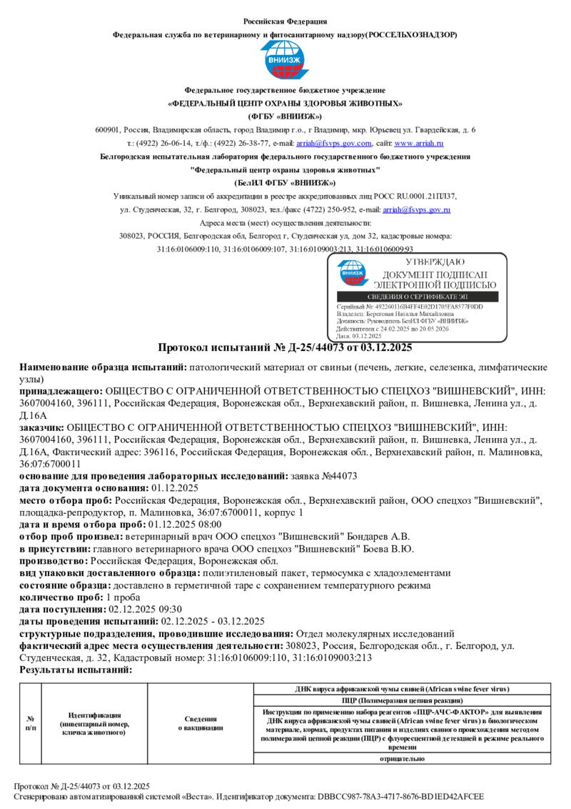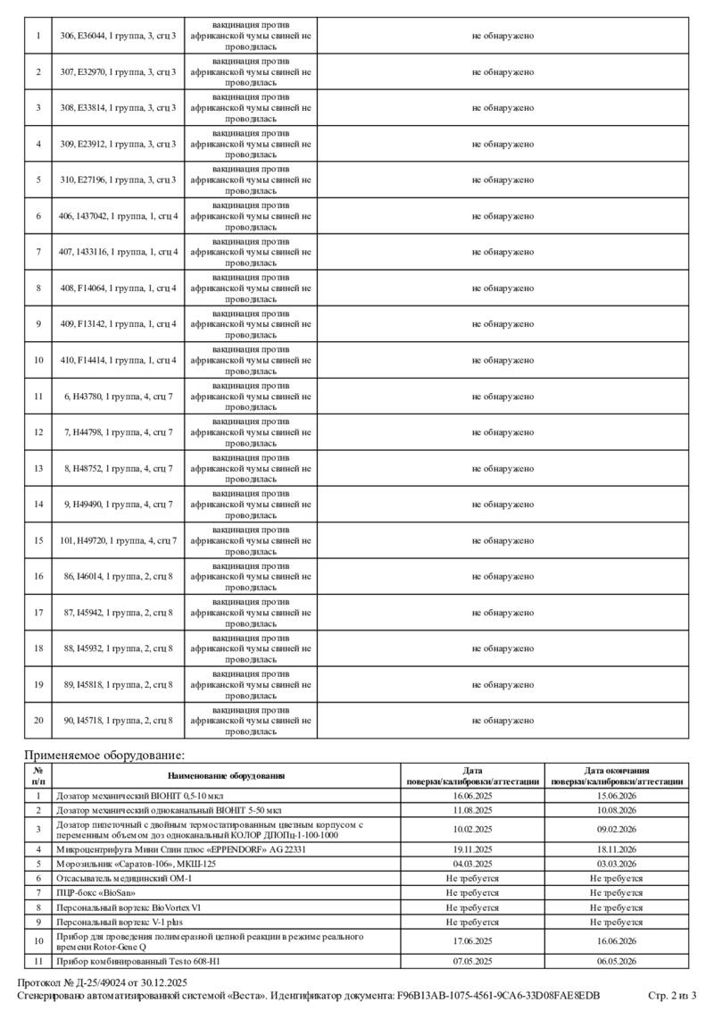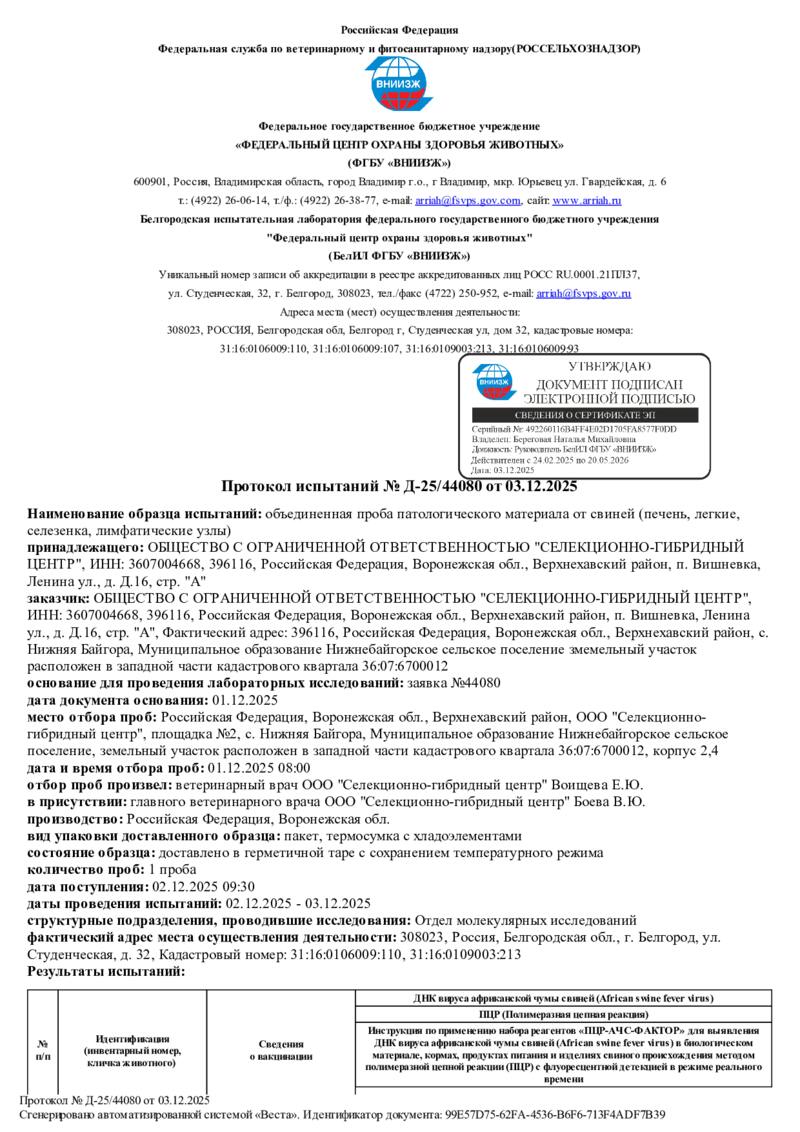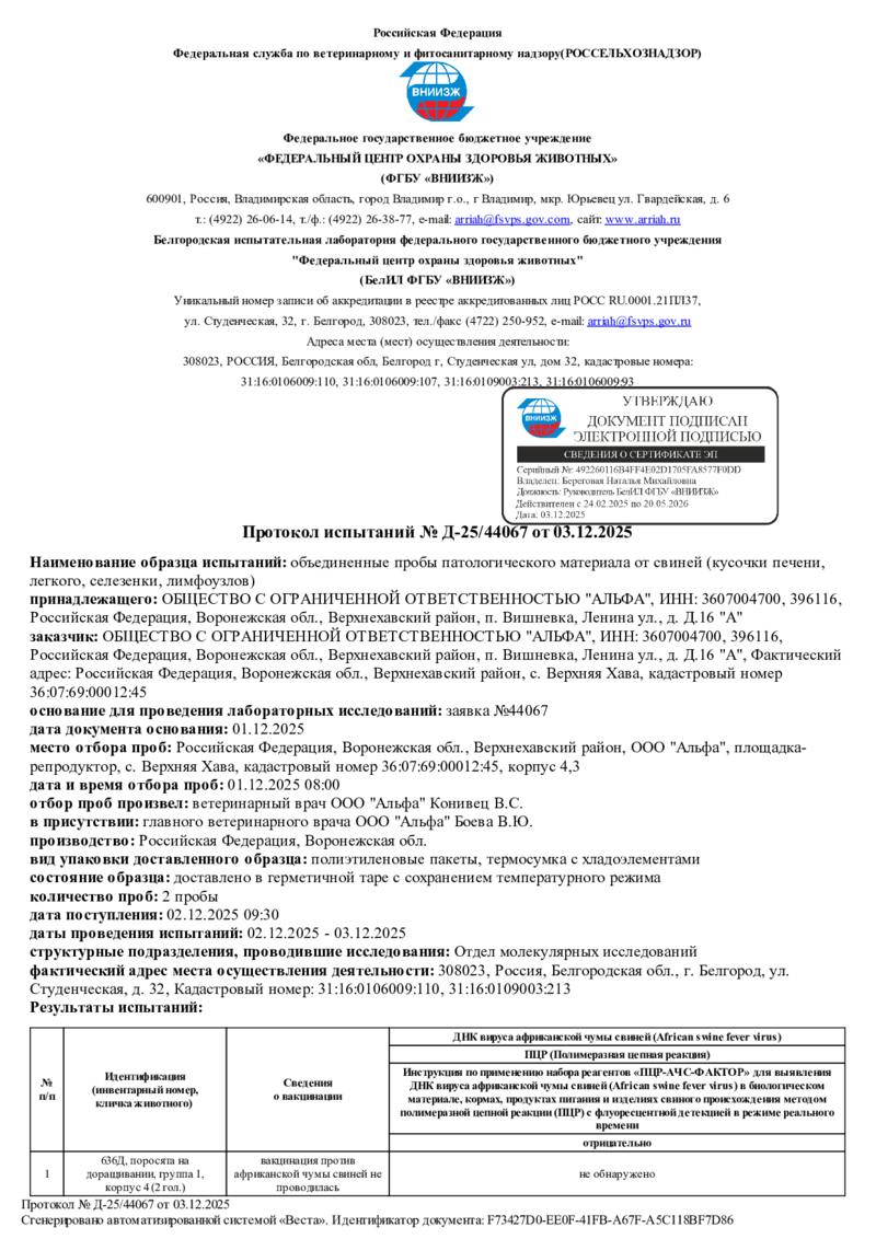 Мониторинг АЧС на фермах СГЦ в декабре 2025 года