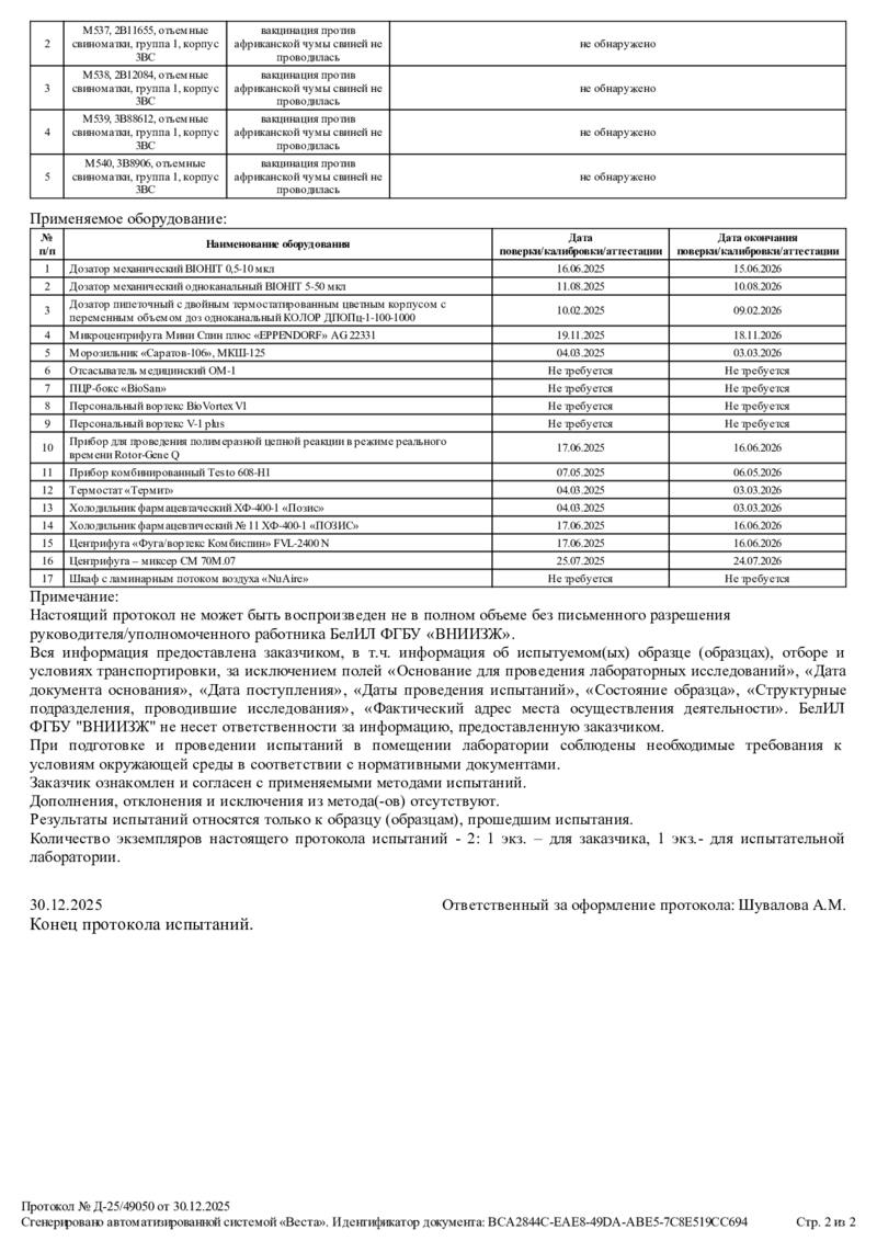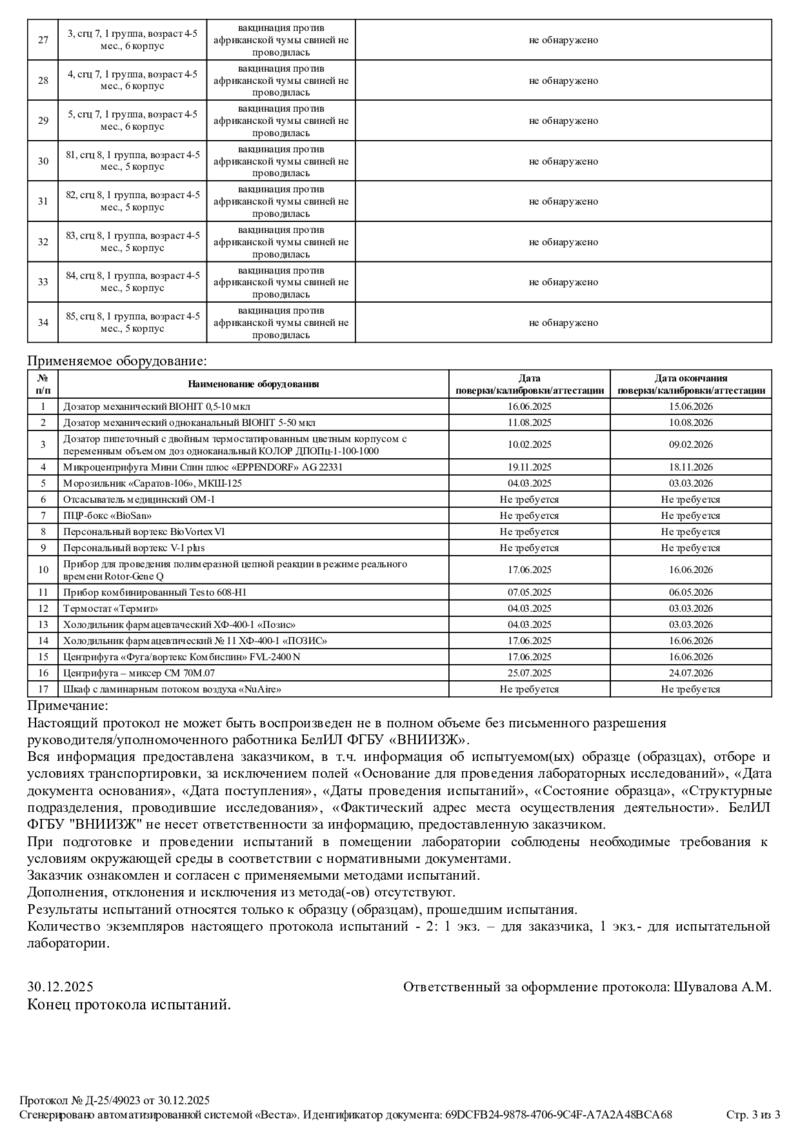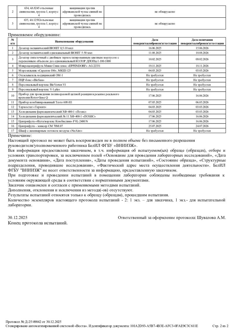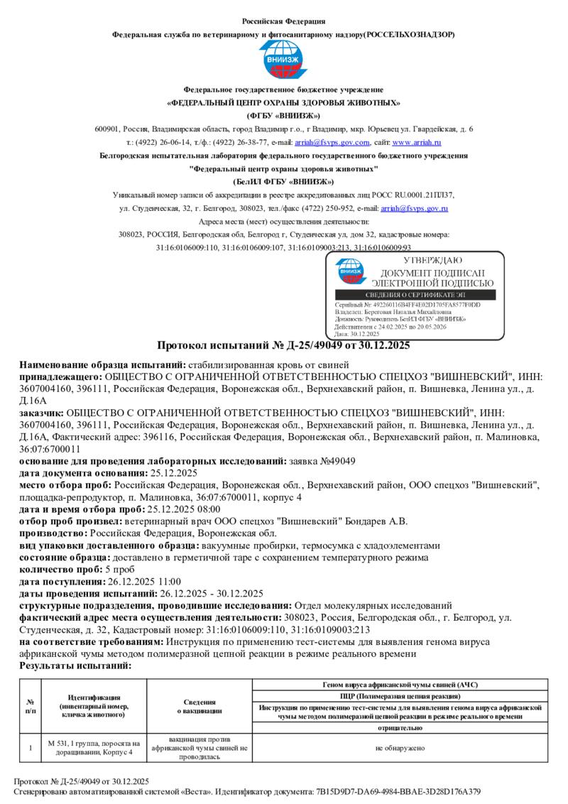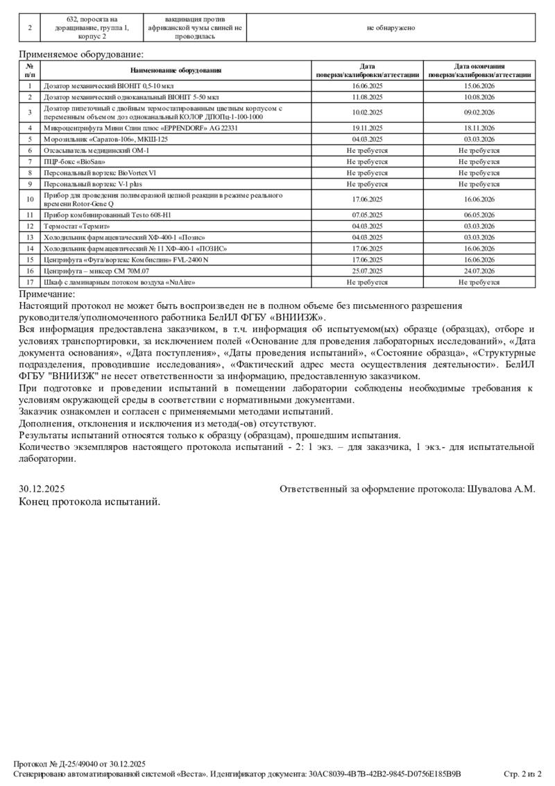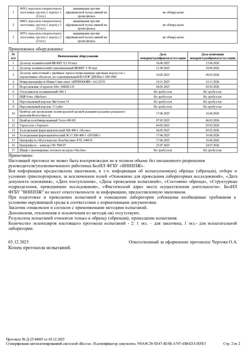 Мониторинг АЧС на фермах СГЦ в декабре 2025 года