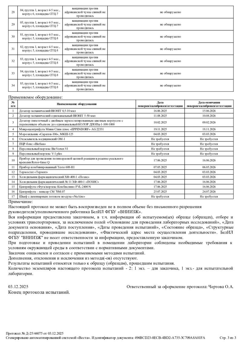 Мониторинг АЧС на фермах СГЦ в ноябре 2025 года