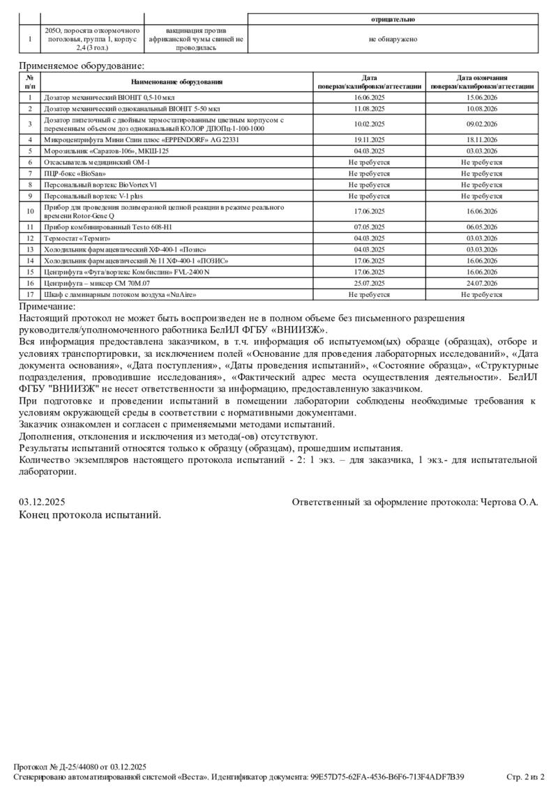 Мониторинг АЧС на фермах СГЦ в октябре 2025 года