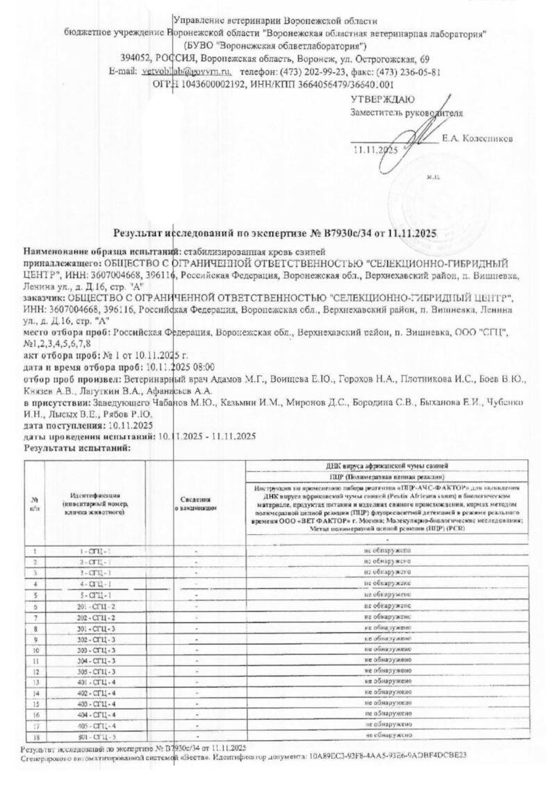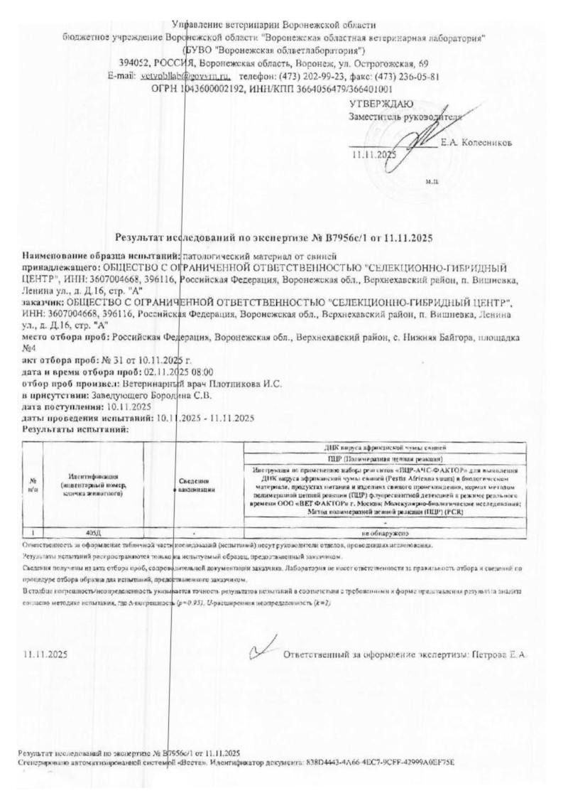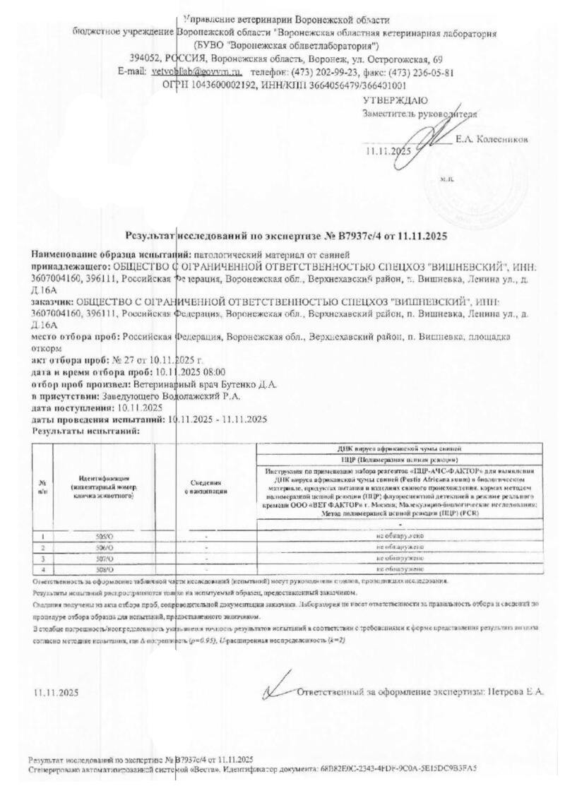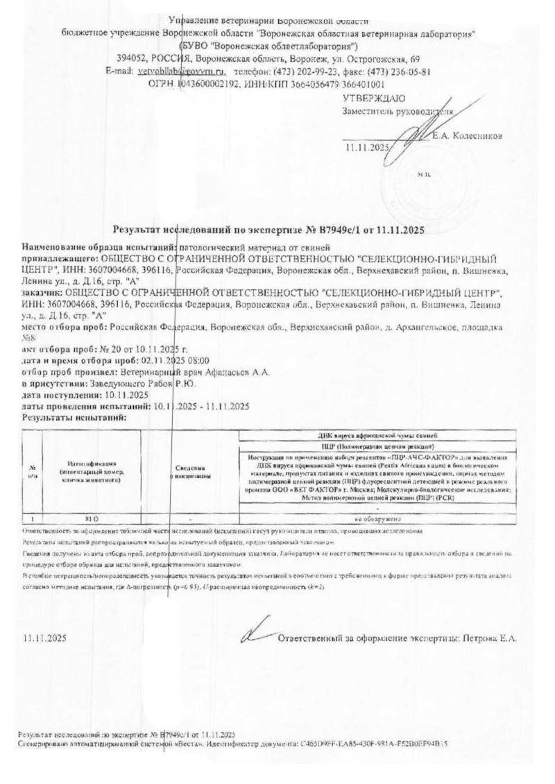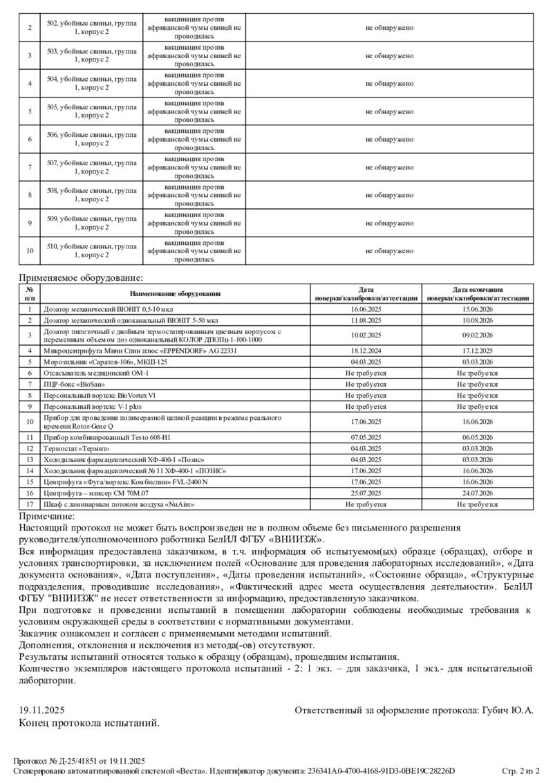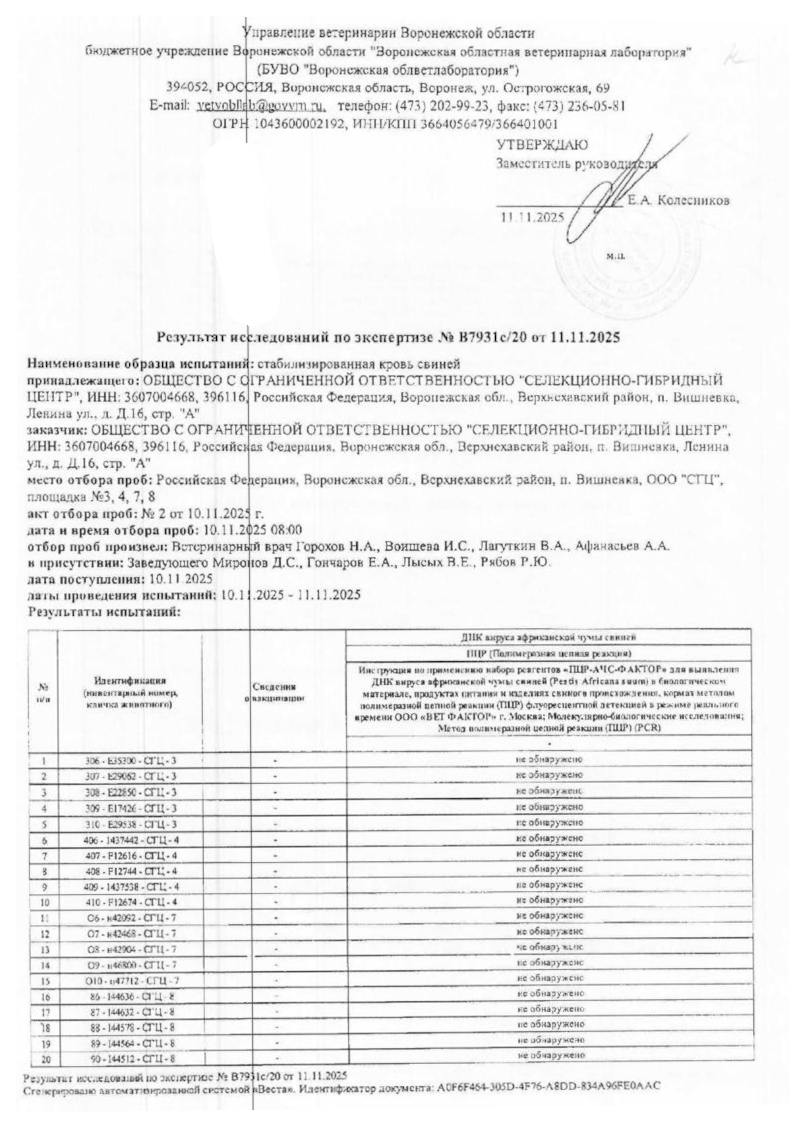 Мониторинг АЧС на фермах СГЦ в ноябре 2025 года