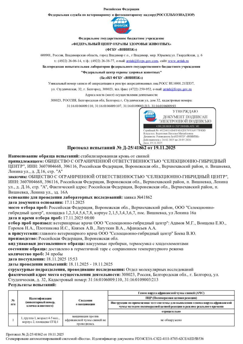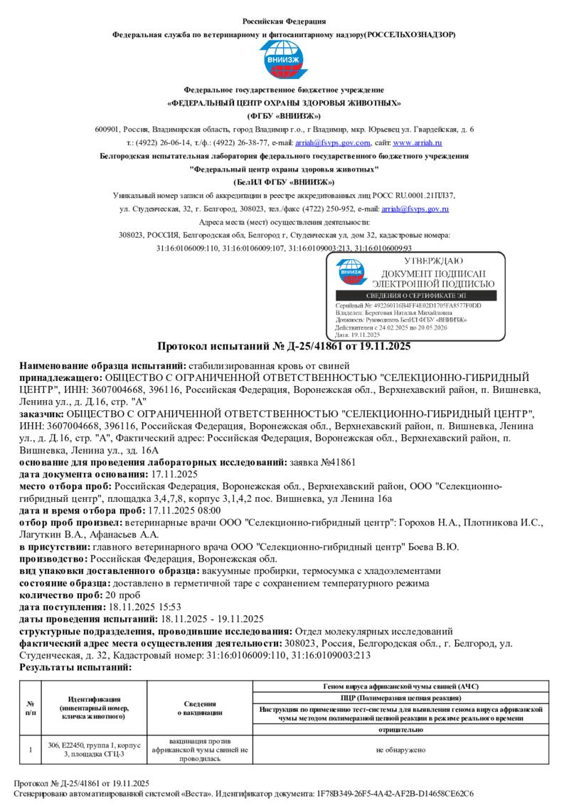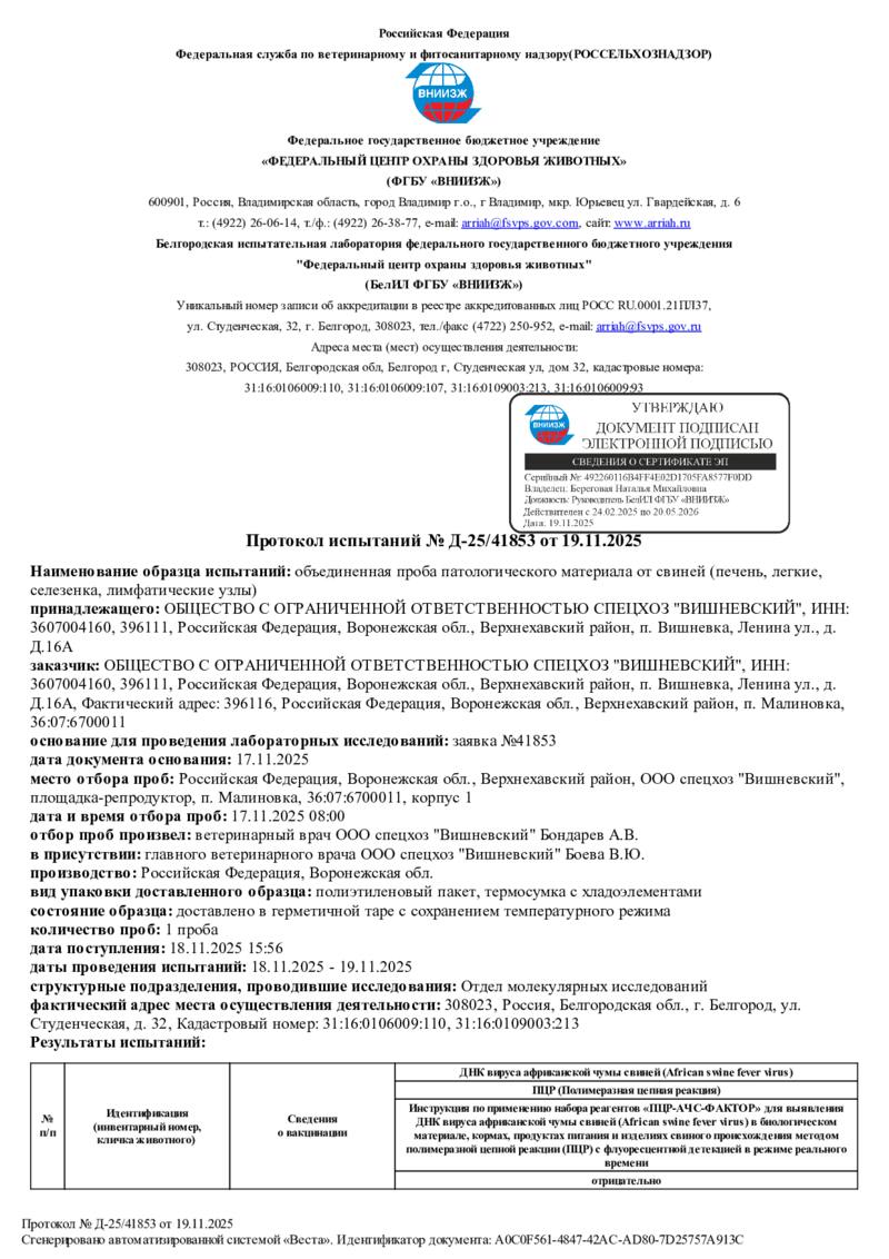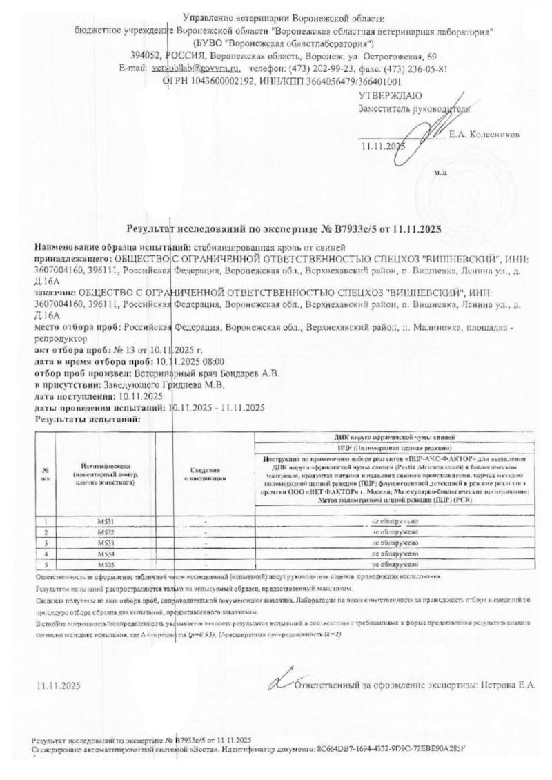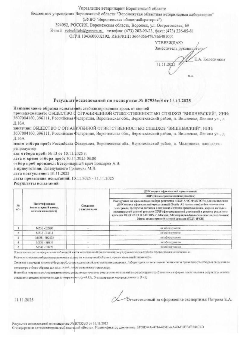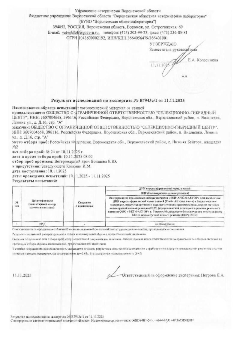 Мониторинг АЧС на фермах СГЦ в ноябре 2025 года