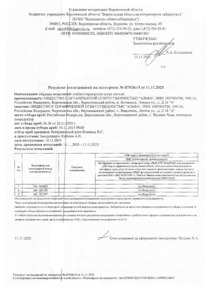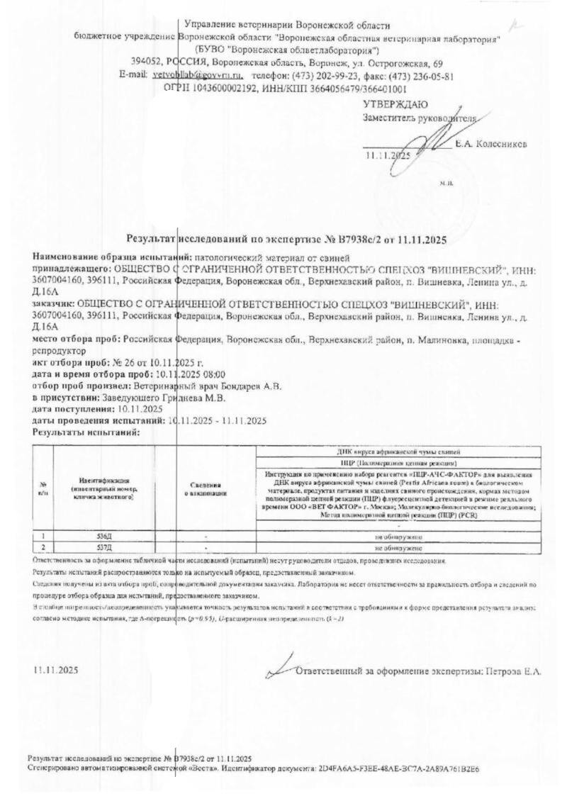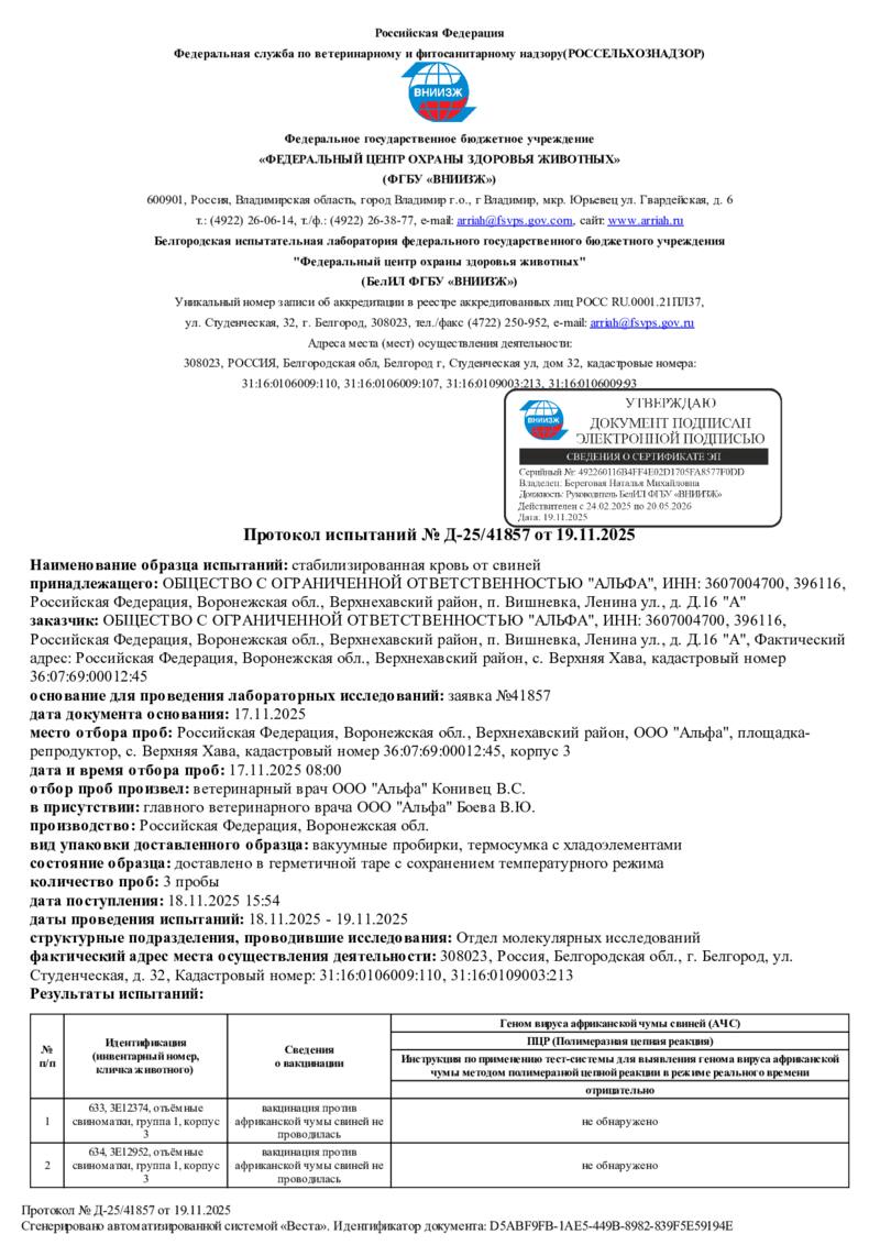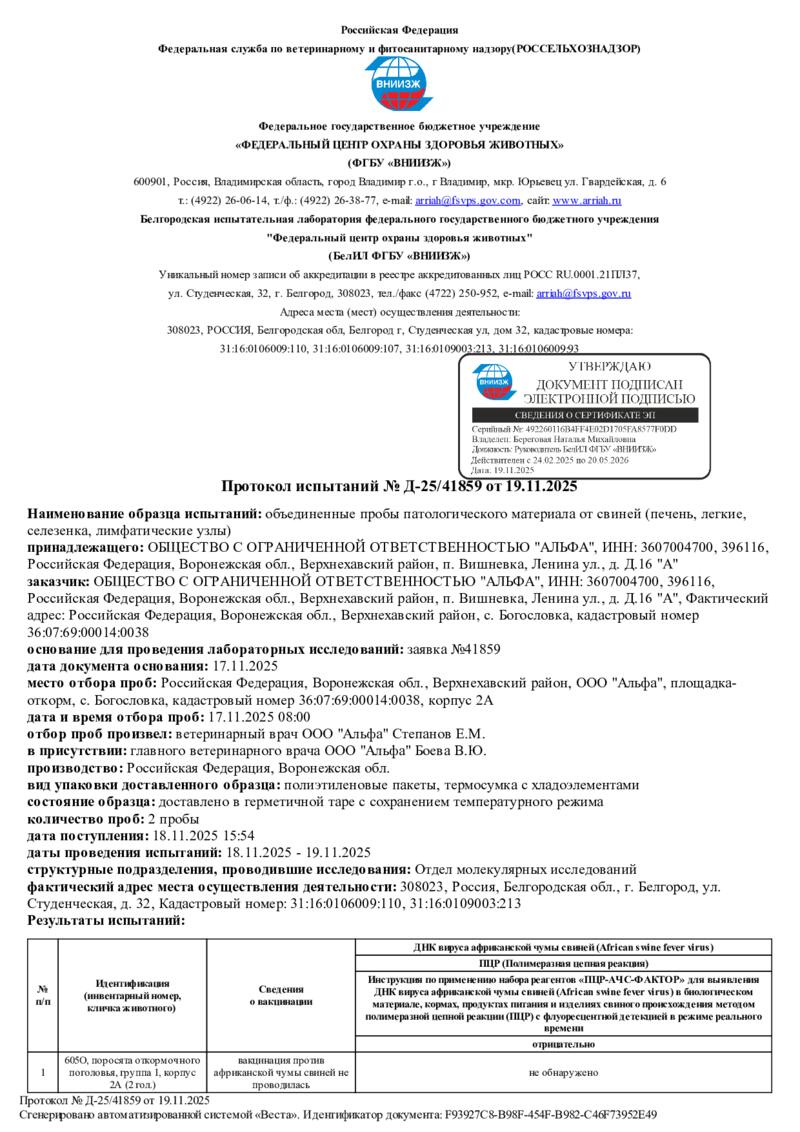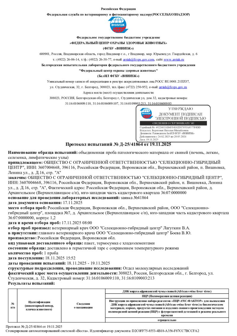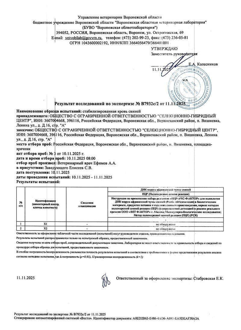Мониторинг АЧС на фермах СГЦ в ноябре 2025 года