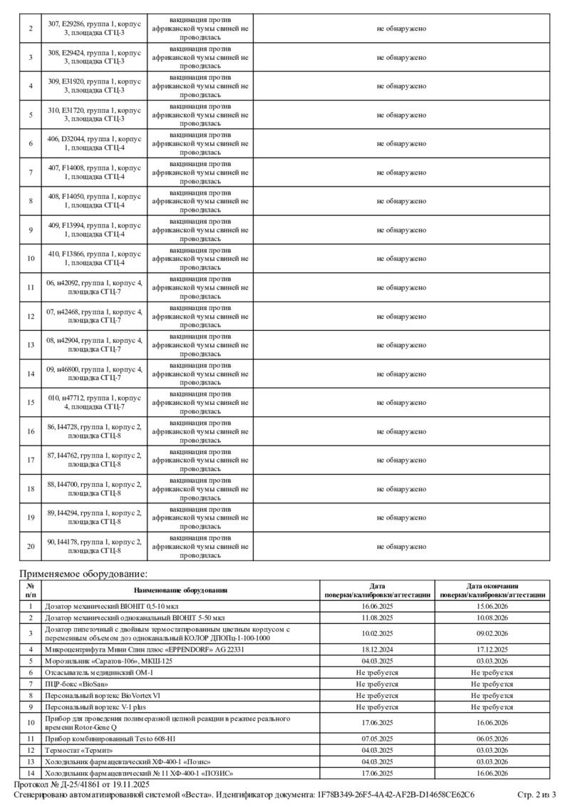 Мониторинг АЧС на фермах СГЦ в октябре 2025 года