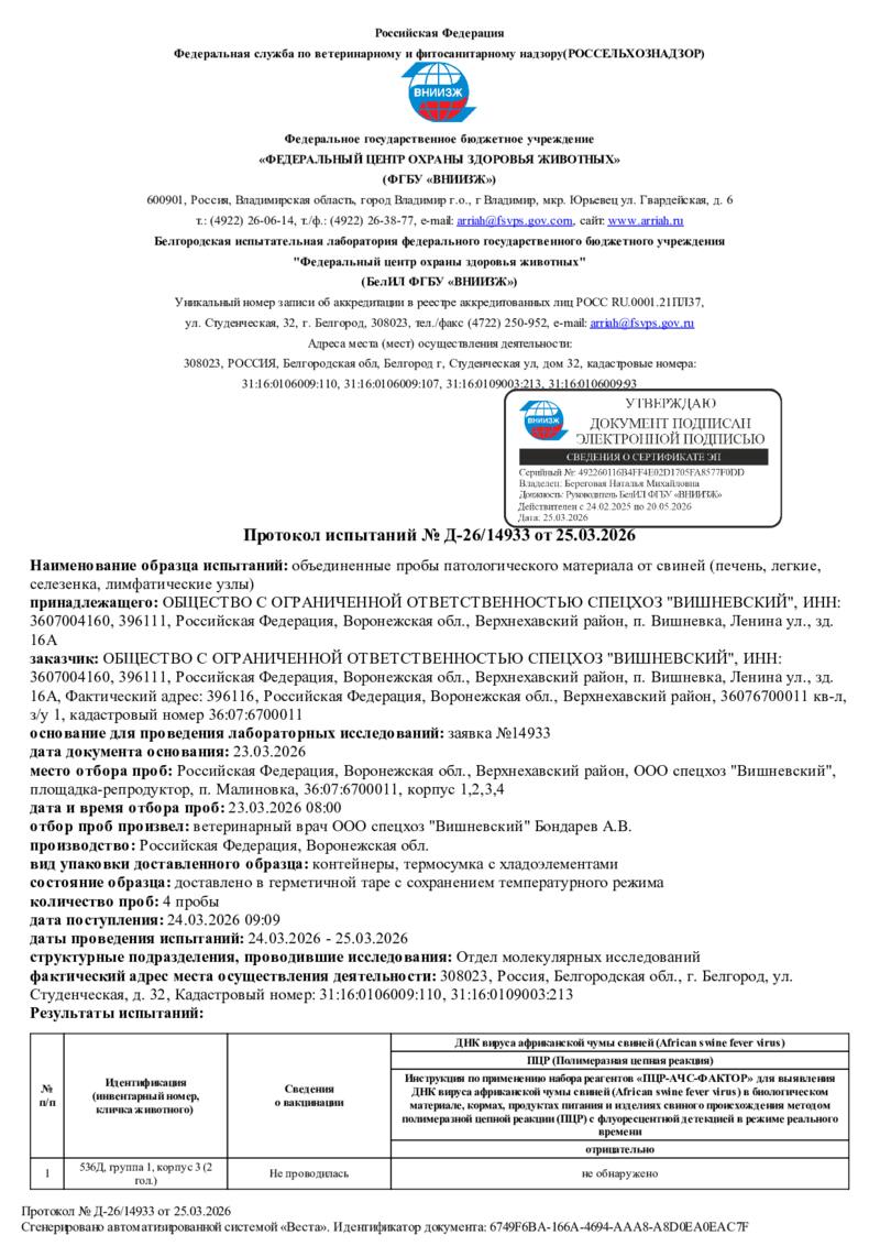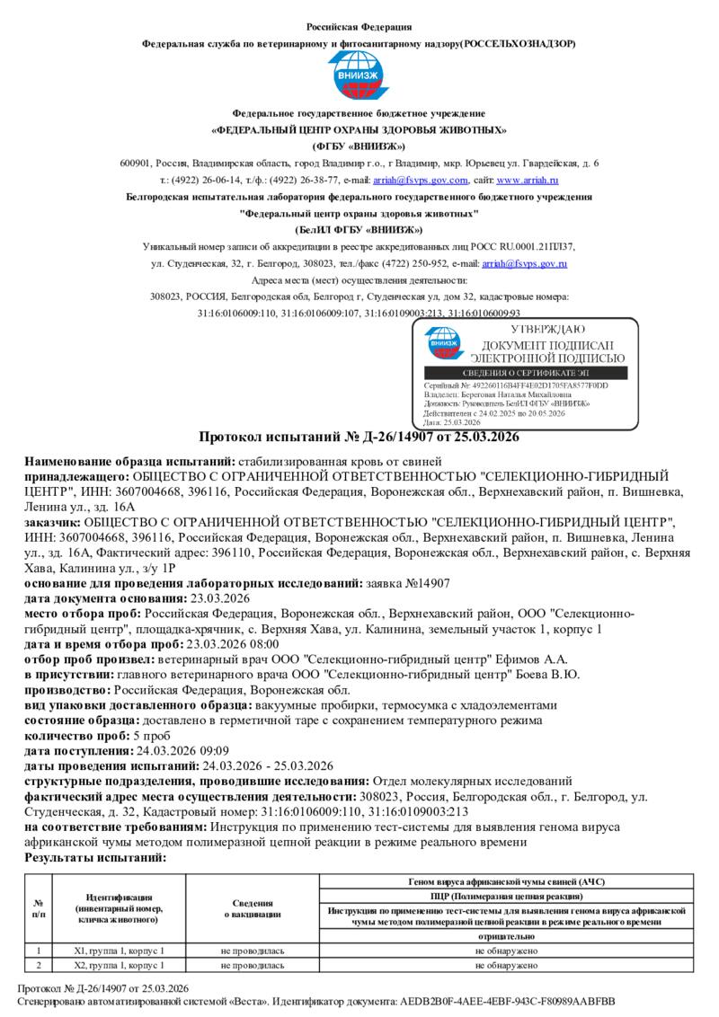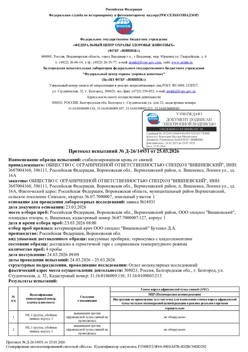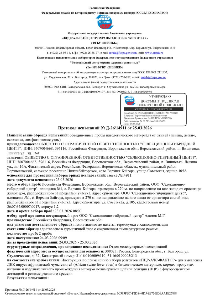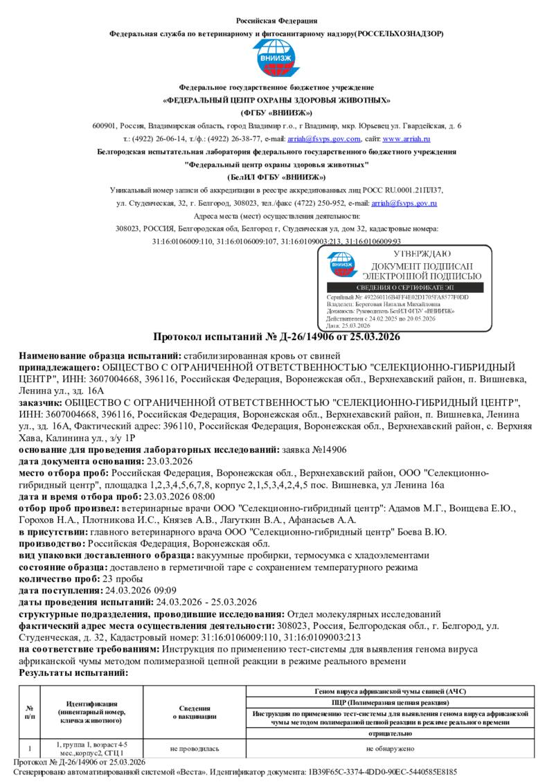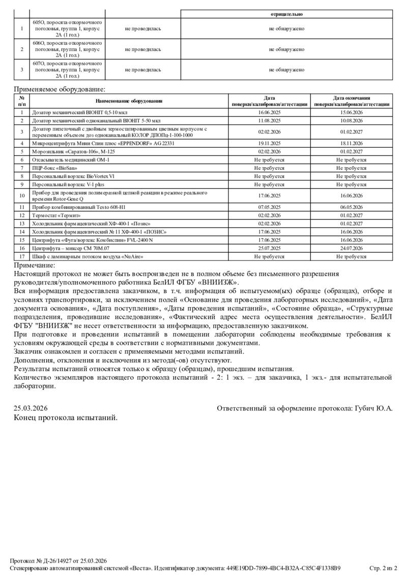 Мы контролируем здоровье своего поголовья по 21 болезни. Публикация информации по: