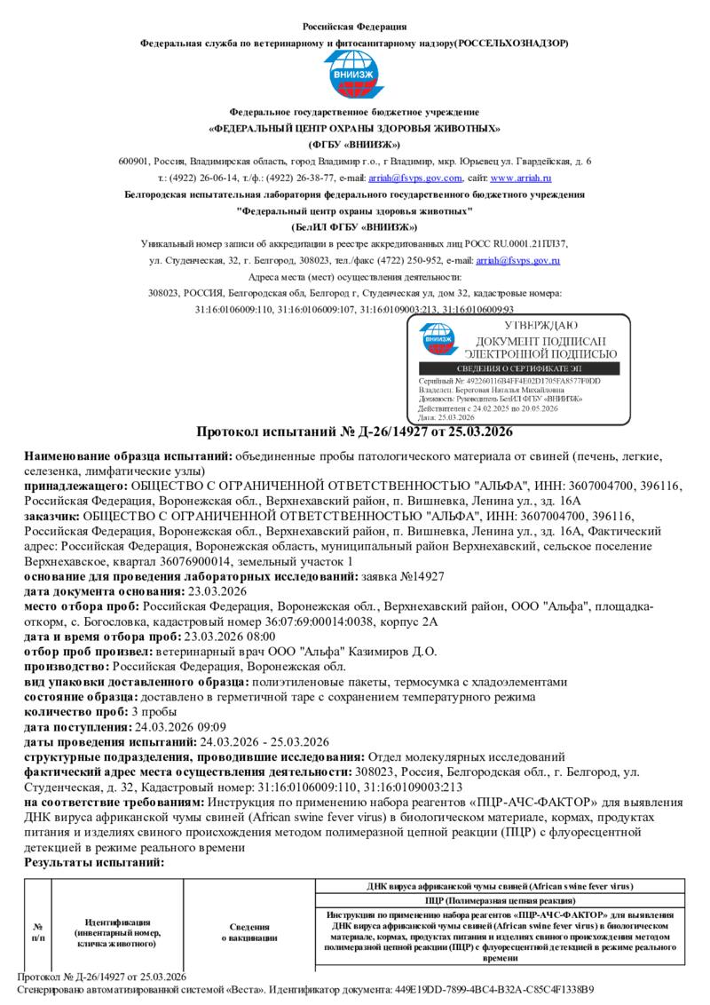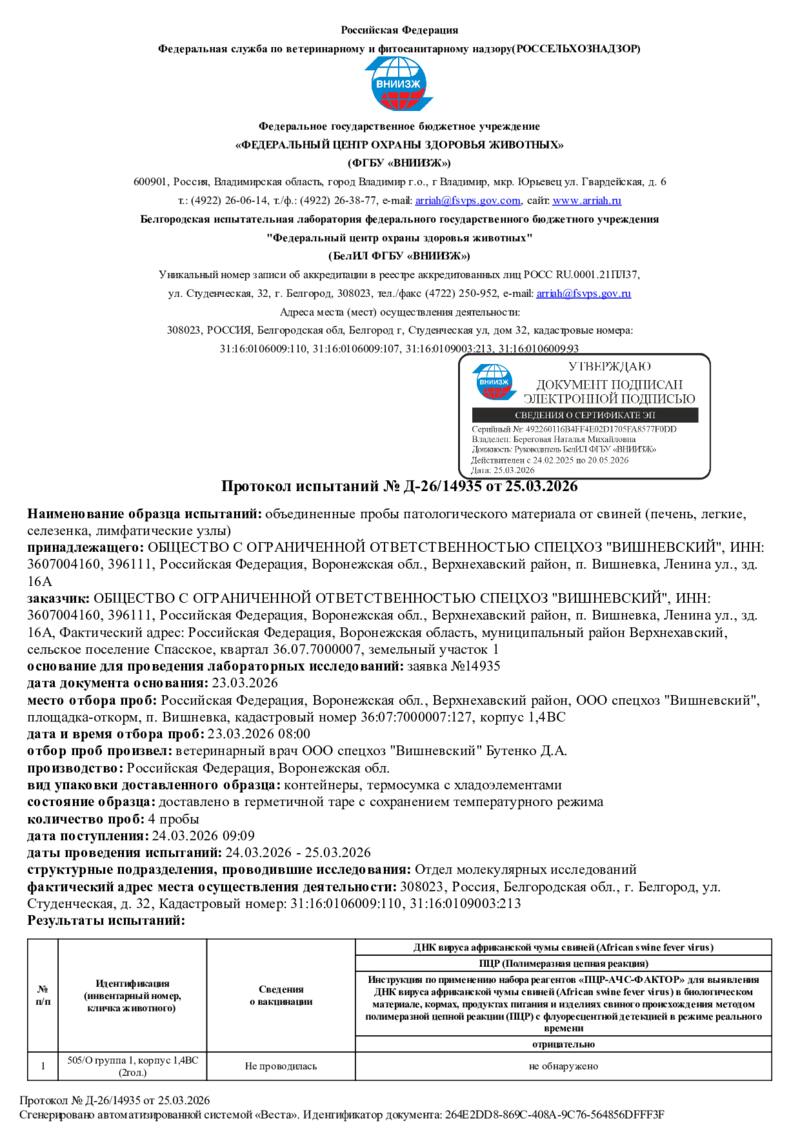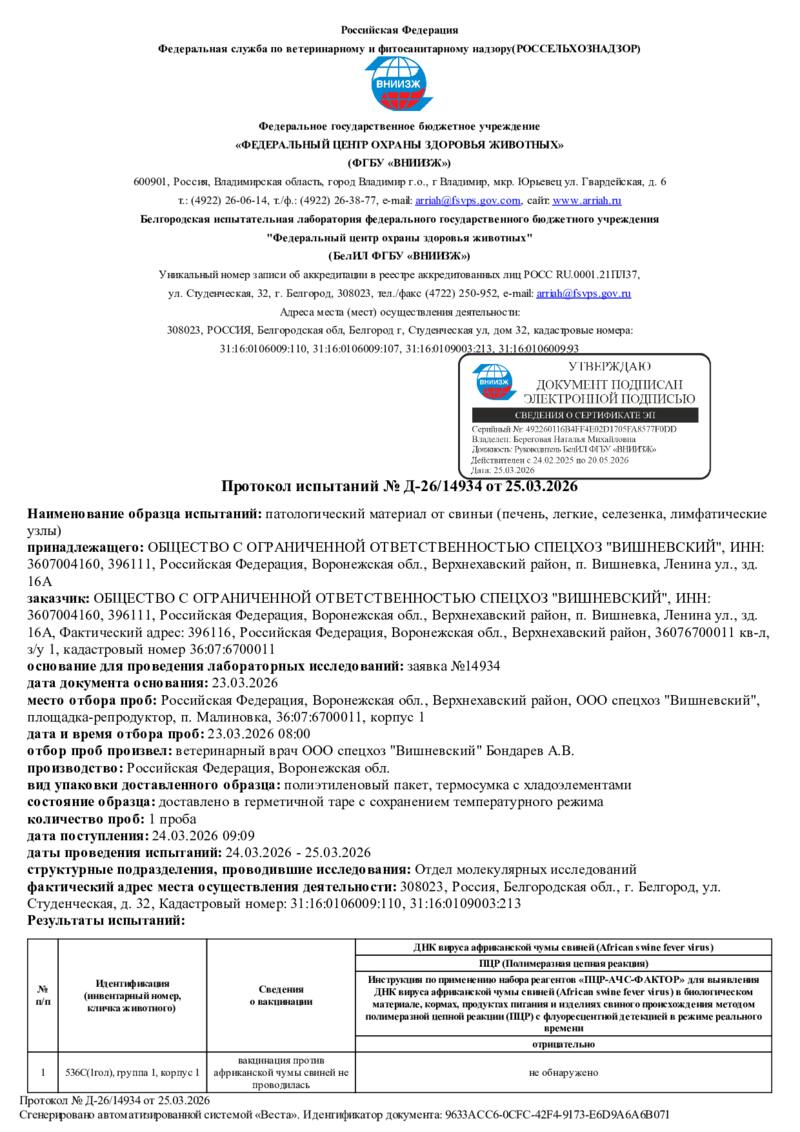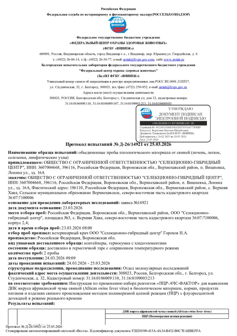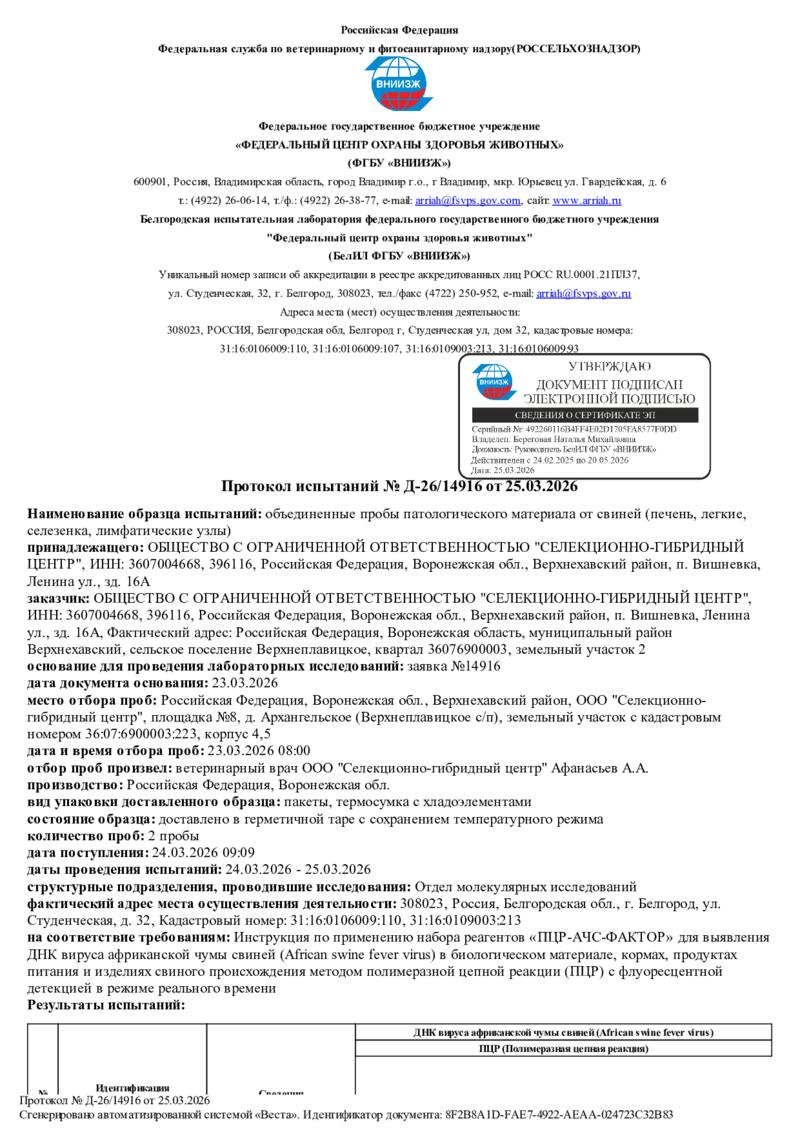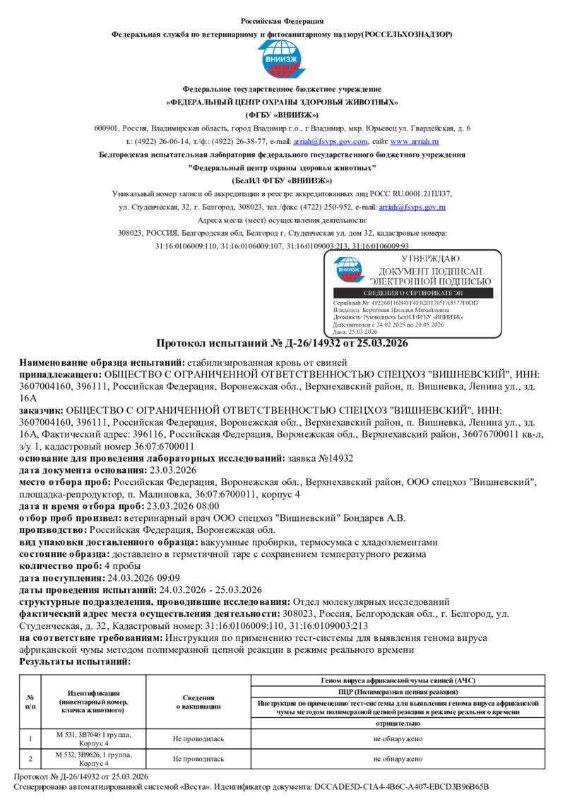 Мы контролируем здоровье своего поголовья по 21 болезни. Публикация информации по: