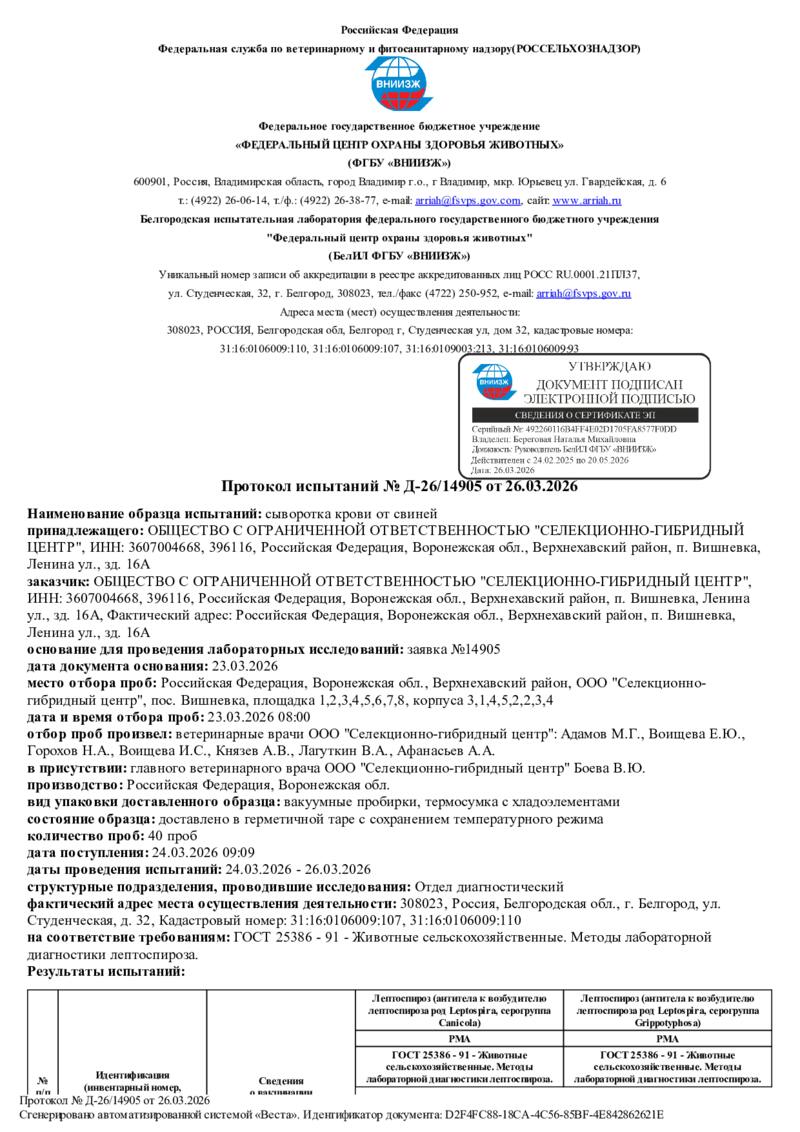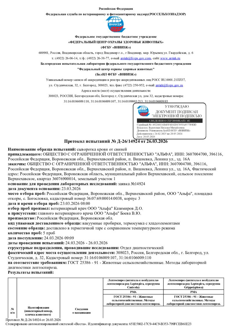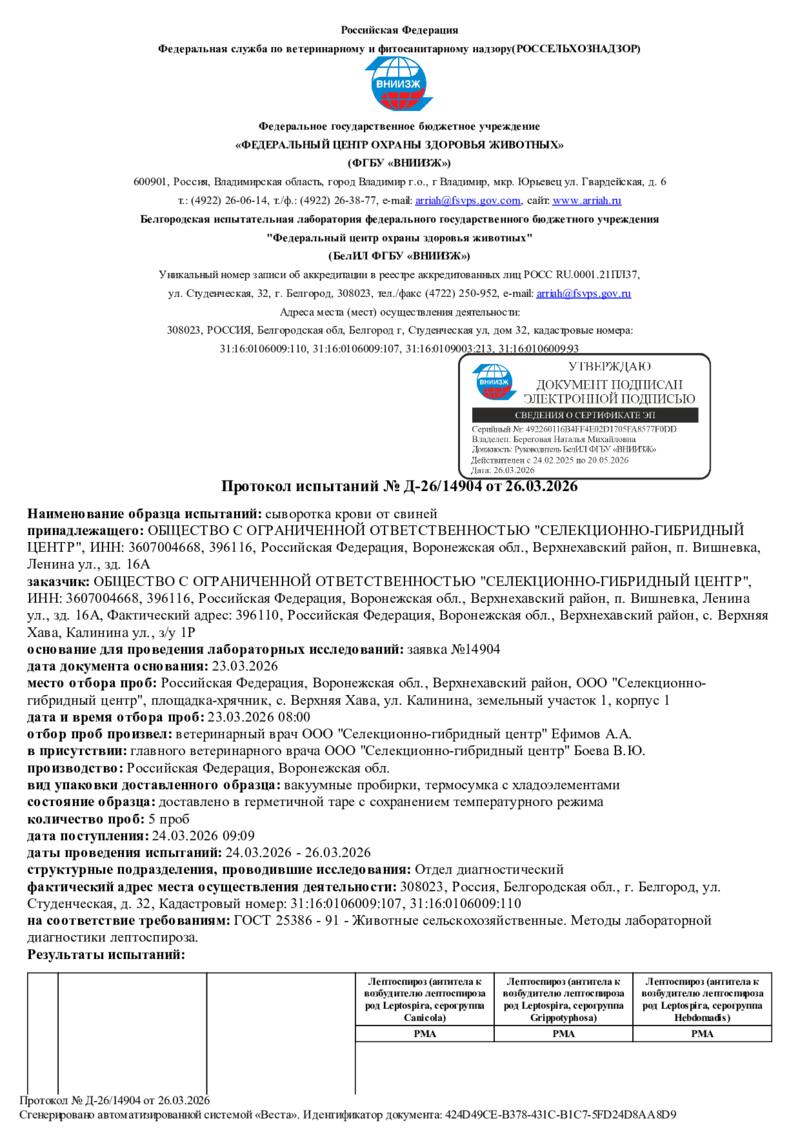 Отрицательный статус по особо опасным болезням в 2026 году