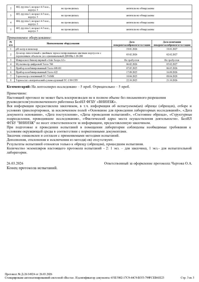 Отрицательный статус по особо опасным болезням